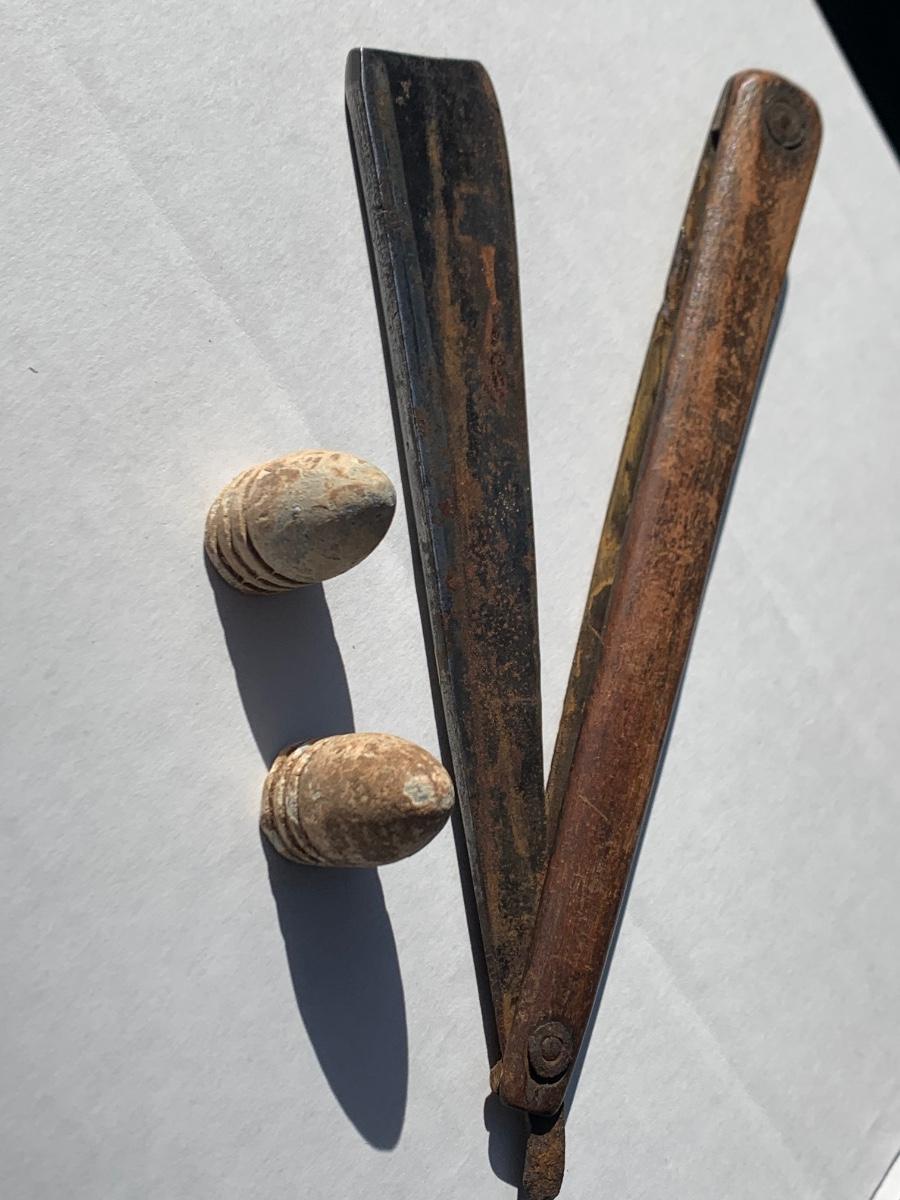 Antique Straight Razor & Civil War Bullets