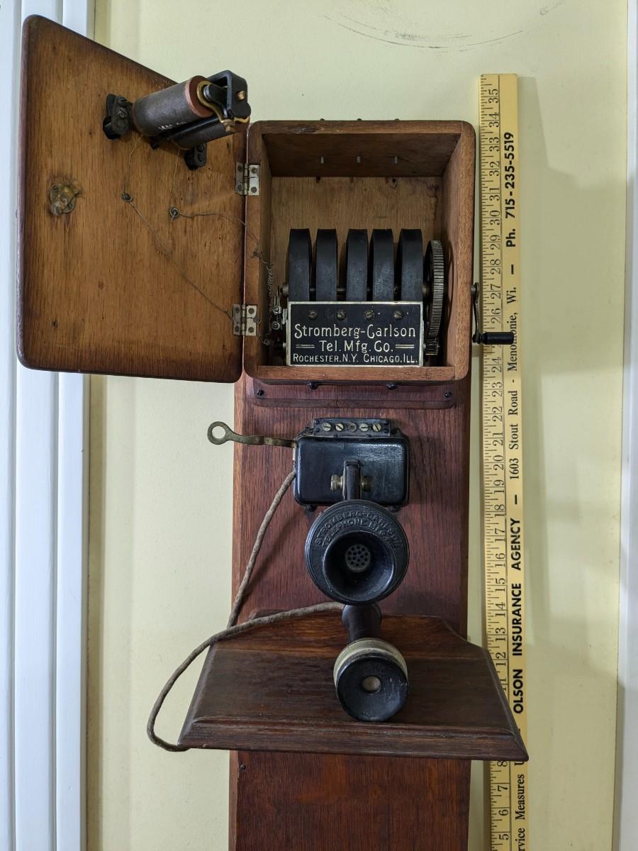 ANTIQUE STROMBERG-CARLSON OAK WOOD DOUBLE BOX WALL CRANK TELEPHONE