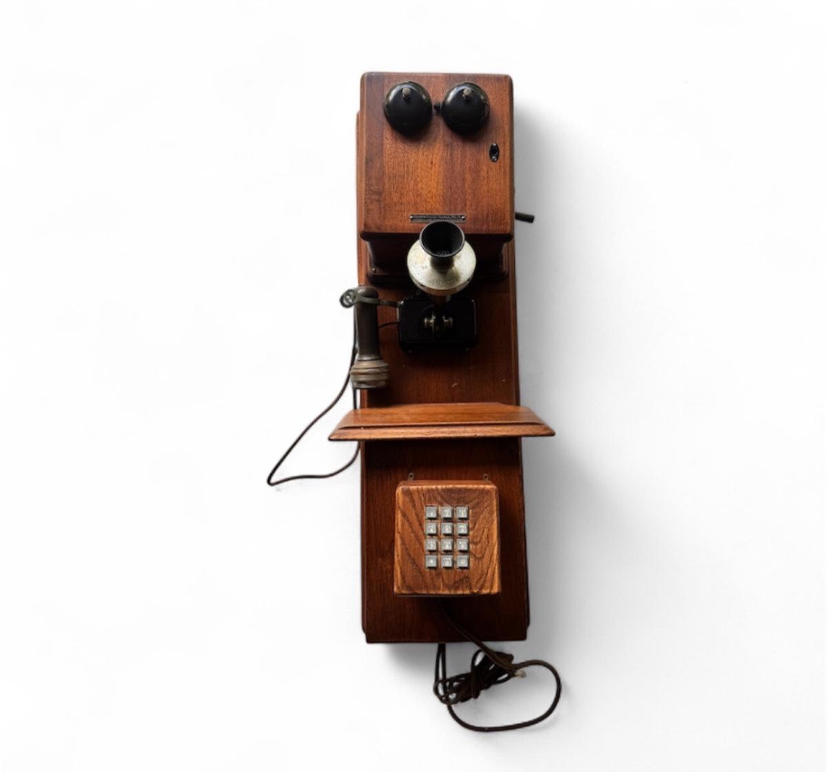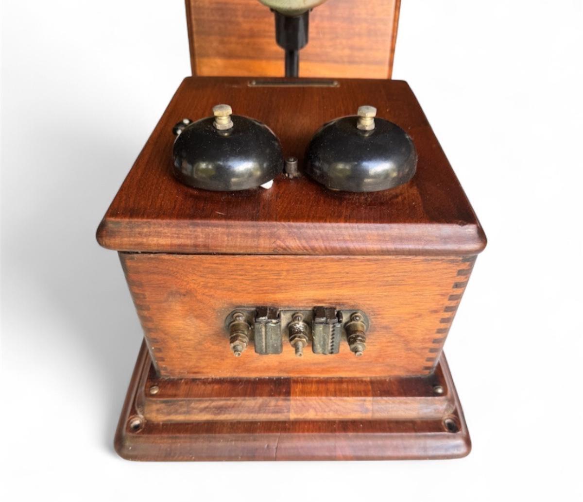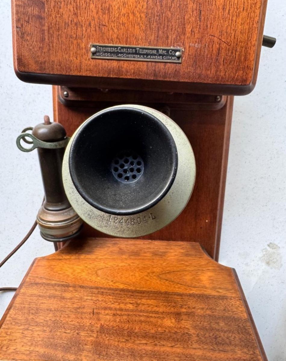 ANTIQUE STROMBERG-CARLSON OAK WOOD DOUBLE BOX WALL CRANK TELEPHONE