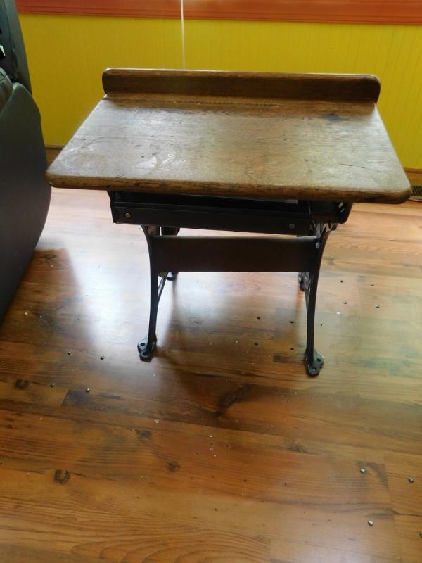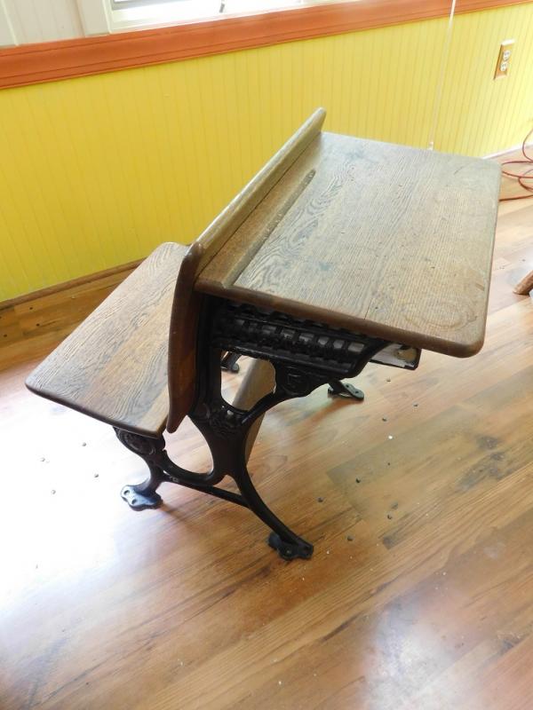 Antique Student Desk Section Oak Wood and Cast Frame in good condition