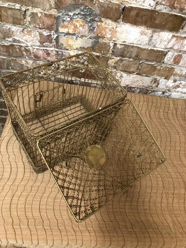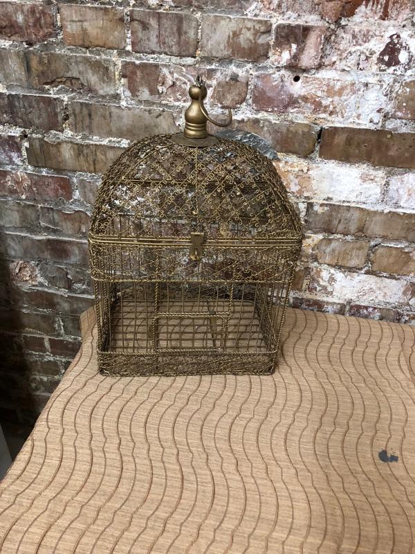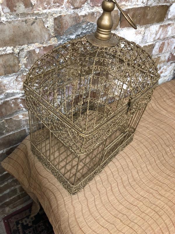 Nice shape on this decorative brass wire birdcage...Approx 12 x 8 x 17"