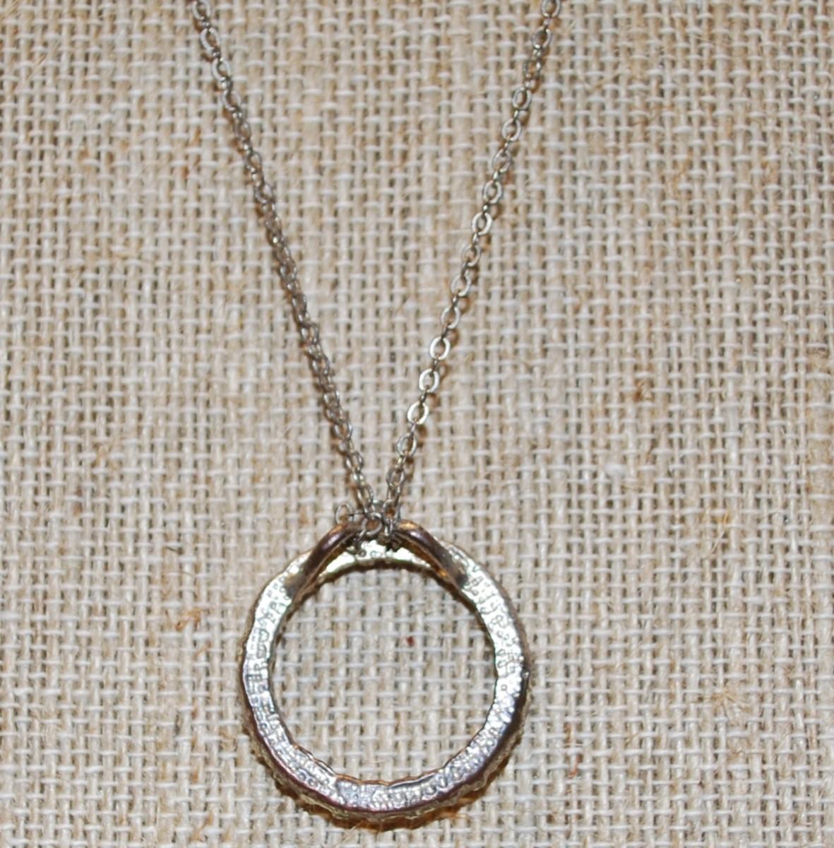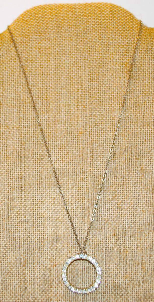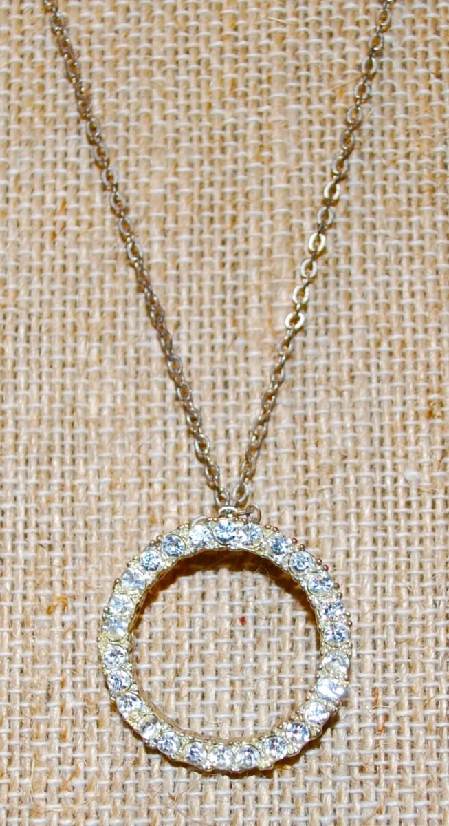 Antique Style Infinity Circle of Stones PENDANT (1" Diam.) on a Silver Tone Necklace Chain 17" L