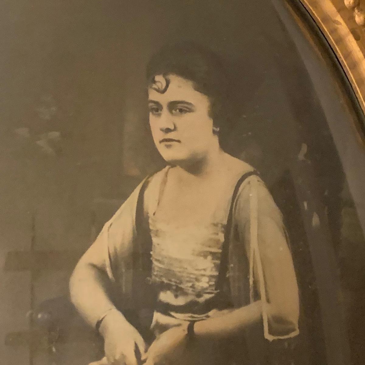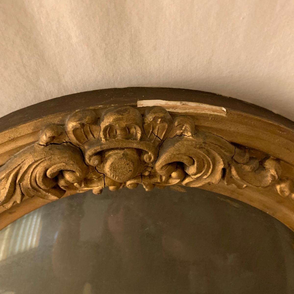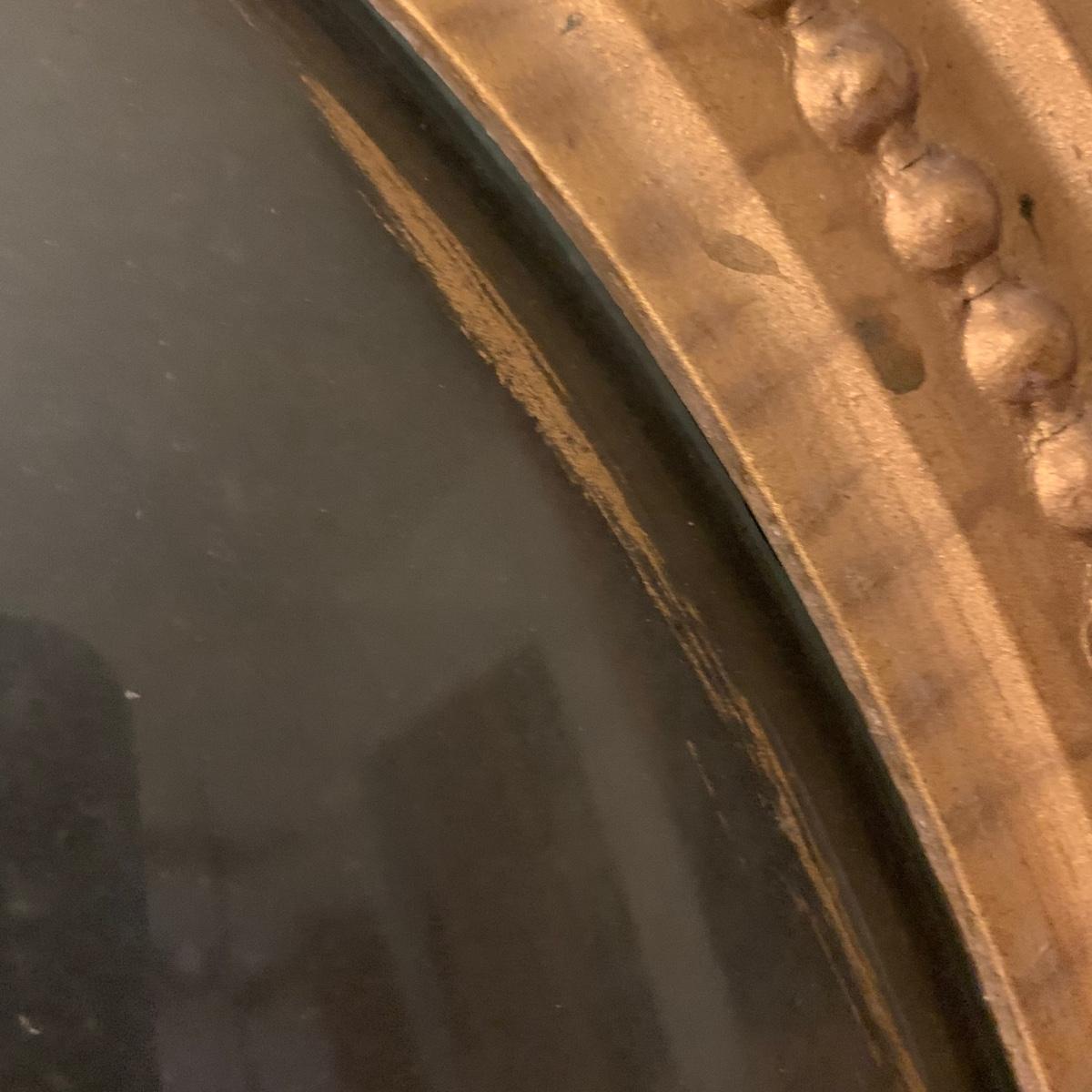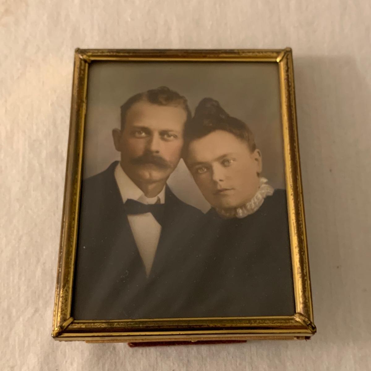 Four antique style photographs, three of which are framed. The large rectangular frame is wood. It measures 19.5” x 1.75” x 23.5”. The frame and photo are in good condition. The oval frame has a convex glass front. It appears to be made of wood with resin accents, painted gold. The frame is in fair condition (see photos), but the photograph is in good condition. The frame measures 17” x 23”. The unframed photo of the baby is 16” x 20”. It is in fair condition with quite torn and water stained edges. The frame with the couple is metal and is in worn, but sturdy condition. It is 3.5” x 4.5”. Shipping available.