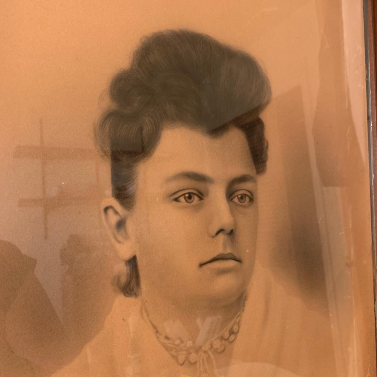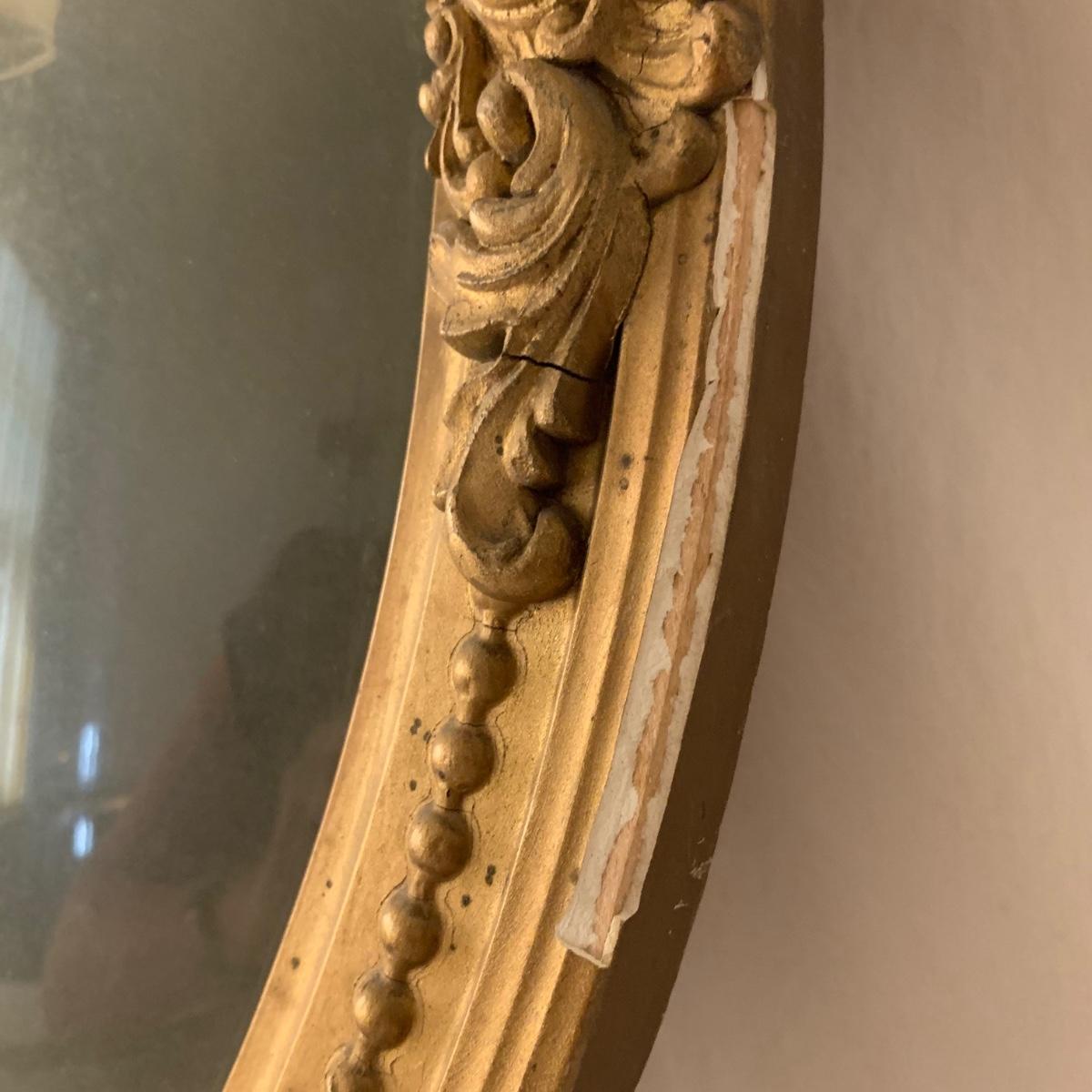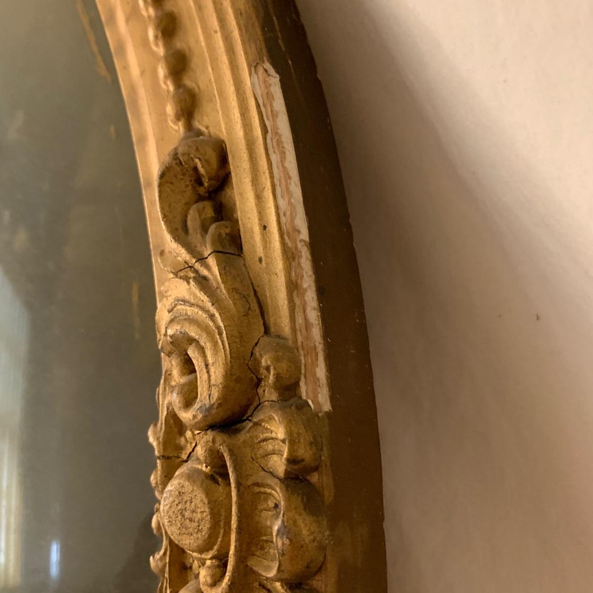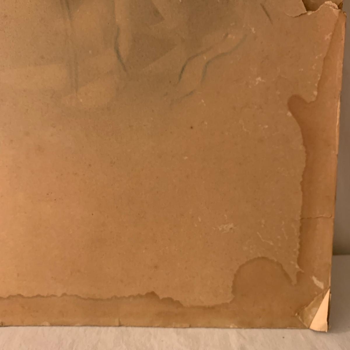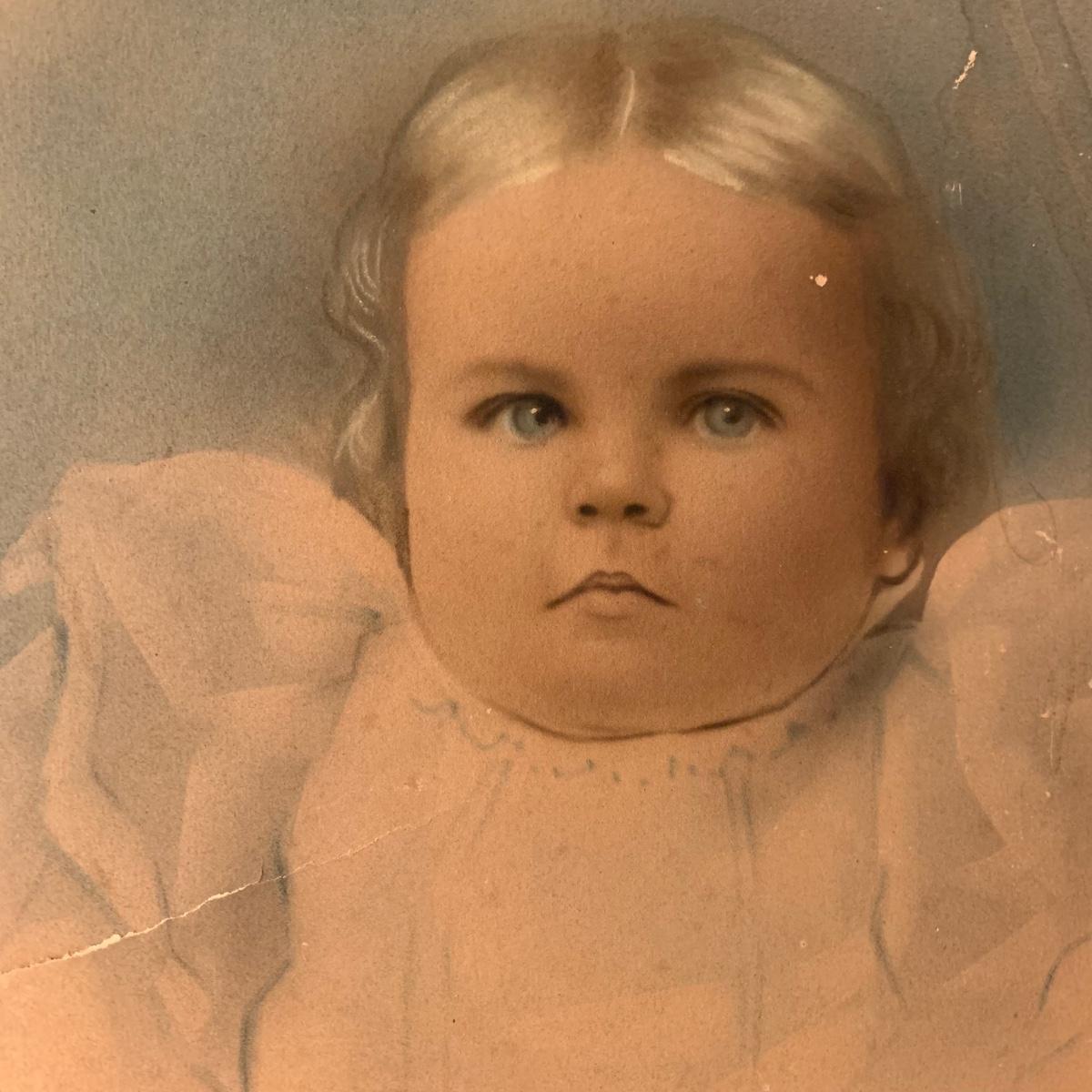 Four antique style photographs, three of which are framed. The large rectangular frame is wood. It measures 19.5” x 1.75” x 23.5”. The frame and photo are in good condition. The oval frame has a convex glass front. It appears to be made of wood with resin accents, painted gold. The frame is in fair condition (see photos), but the photograph is in good condition. The frame measures 17” x 23”. The unframed photo of the baby is 16” x 20”. It is in fair condition with quite torn and water stained edges. The frame with the couple is metal and is in worn, but sturdy condition. It is 3.5” x 4.5”. Shipping available.