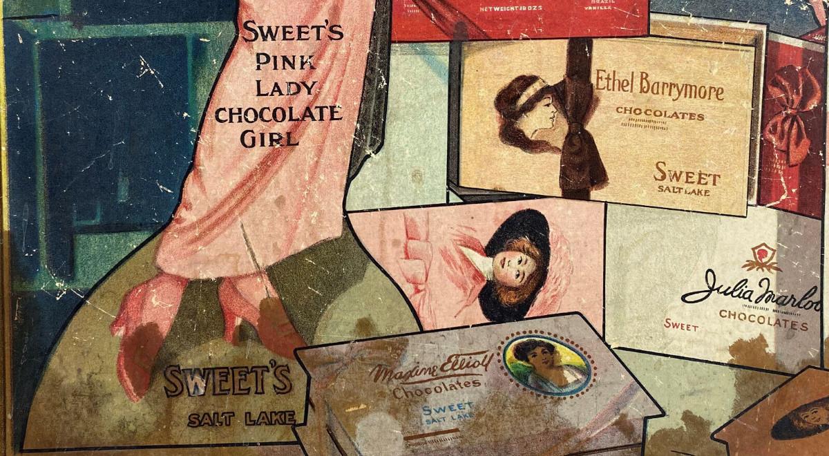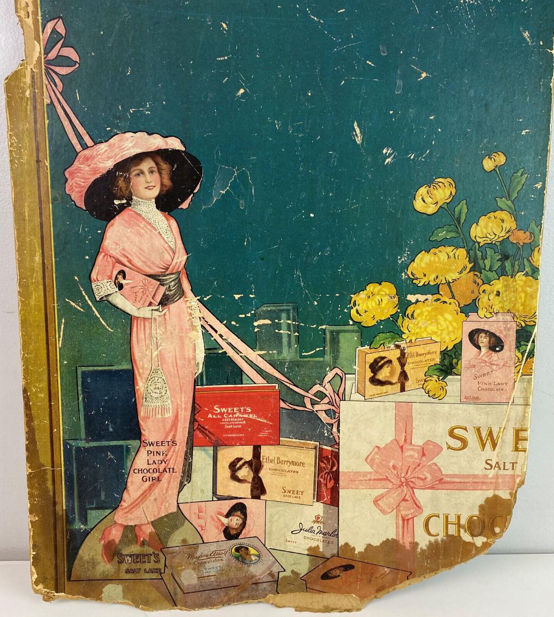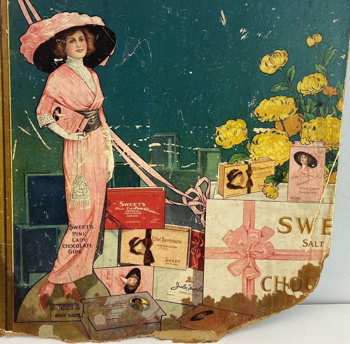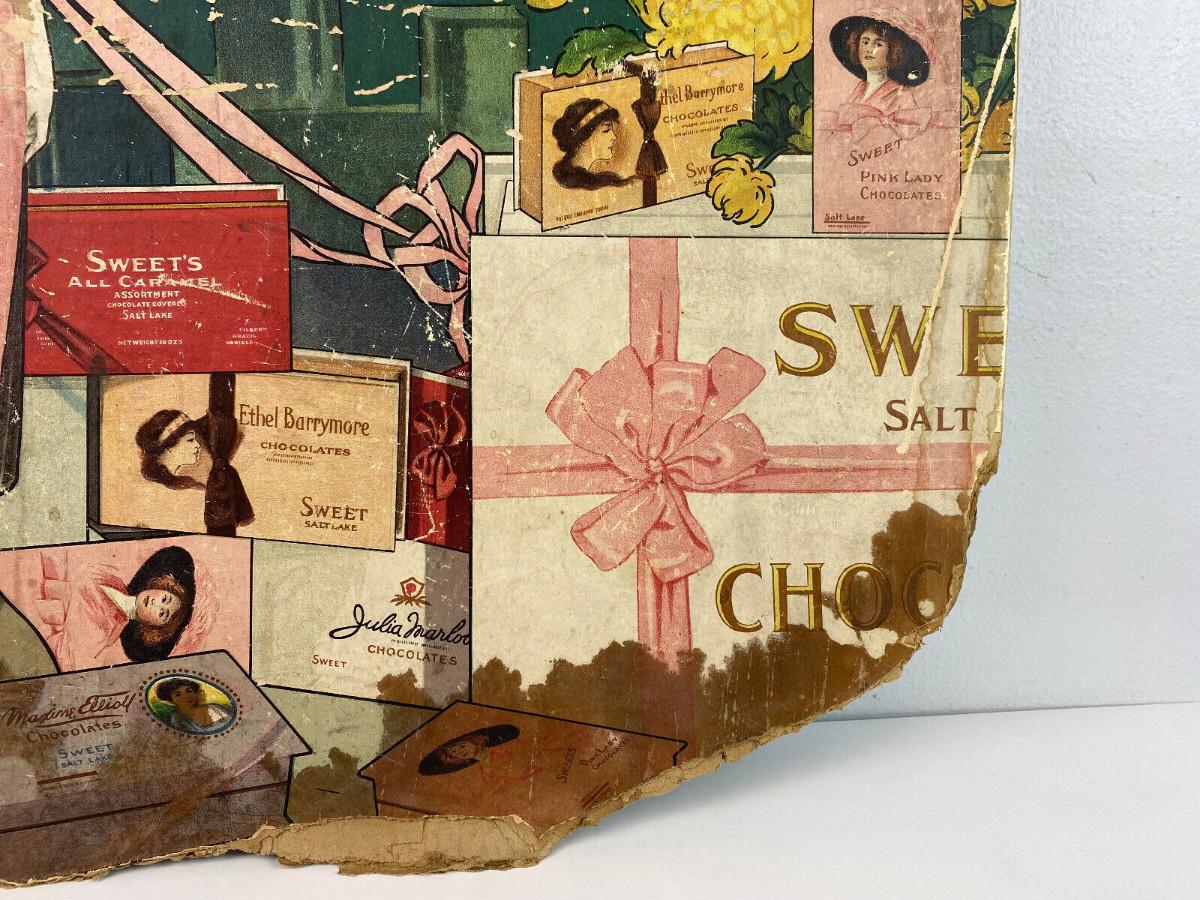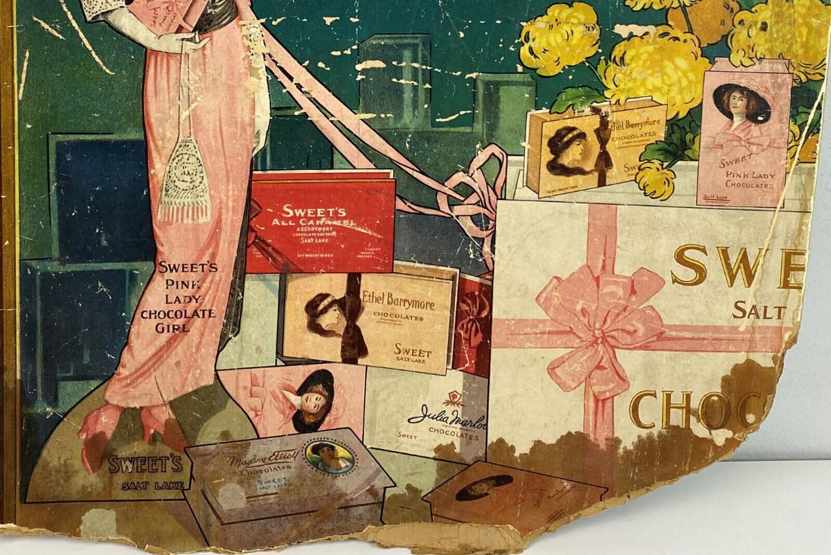 antique SWEET'S CANDY SALT LAKE CITY CHOCOLATES ADVERTISING DISPLAY SIGN 1910s