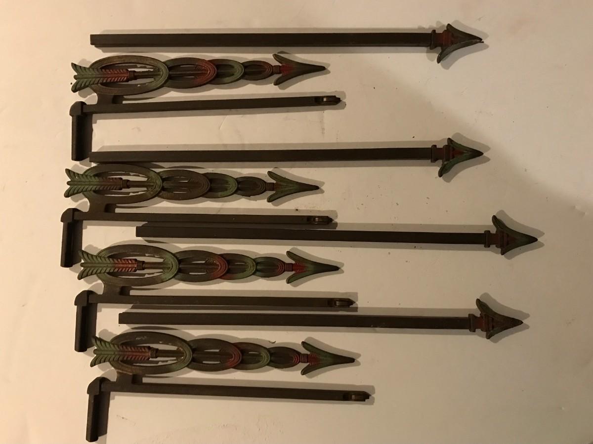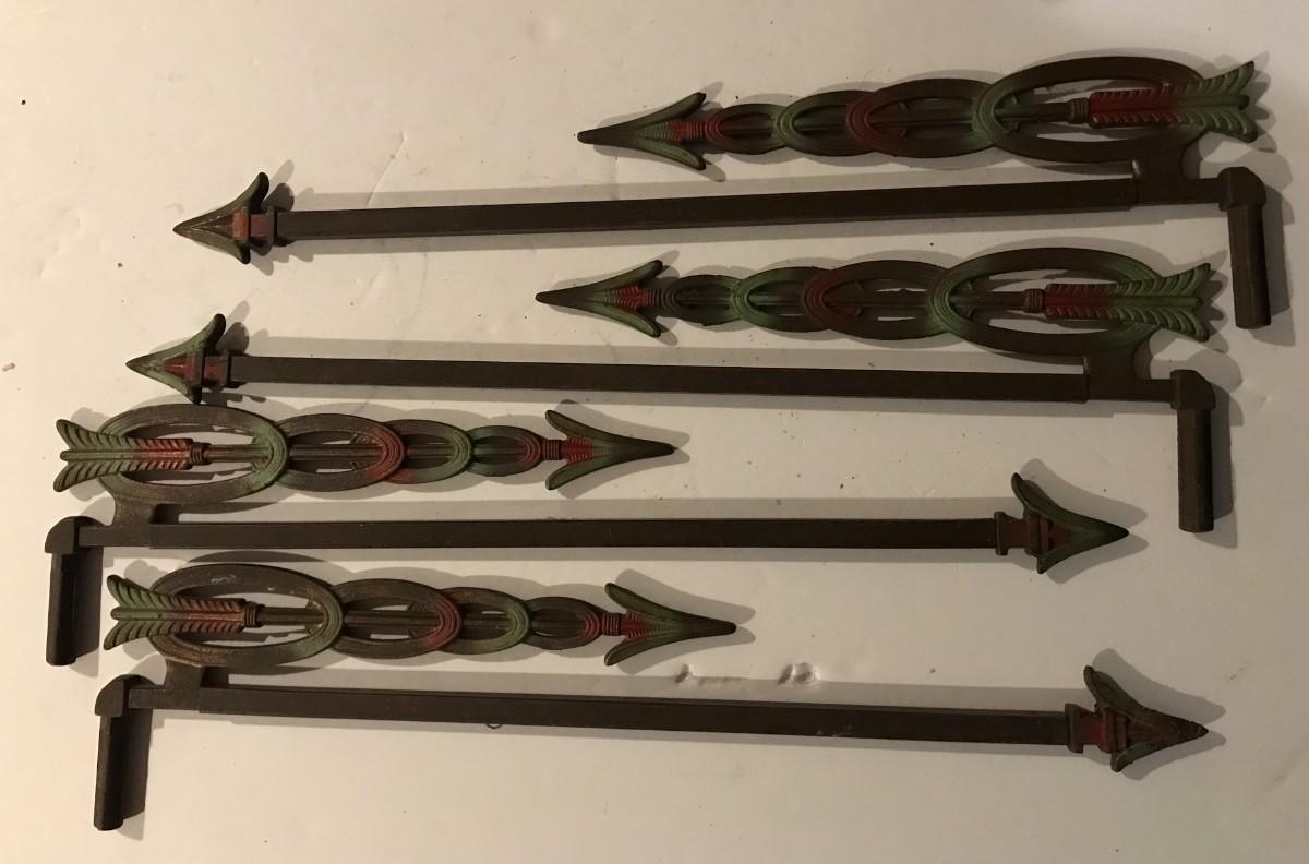 Antique Swing Arm Curtain Rod Brackets Painted Arrows ~ Native American ~ Western ~ Craftsman Styles