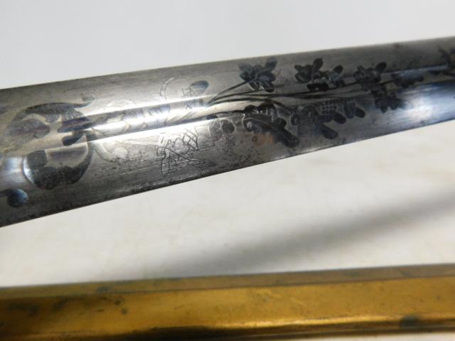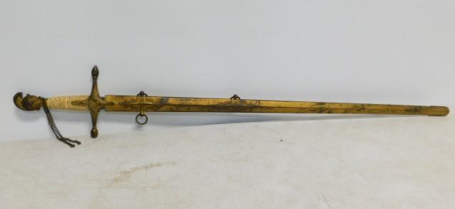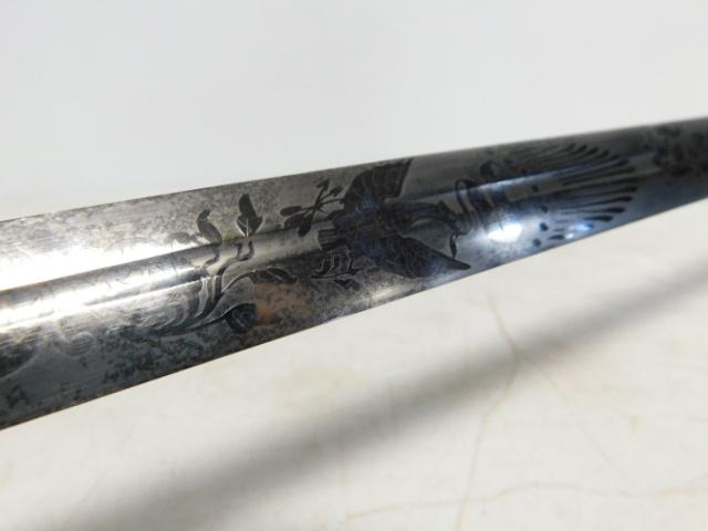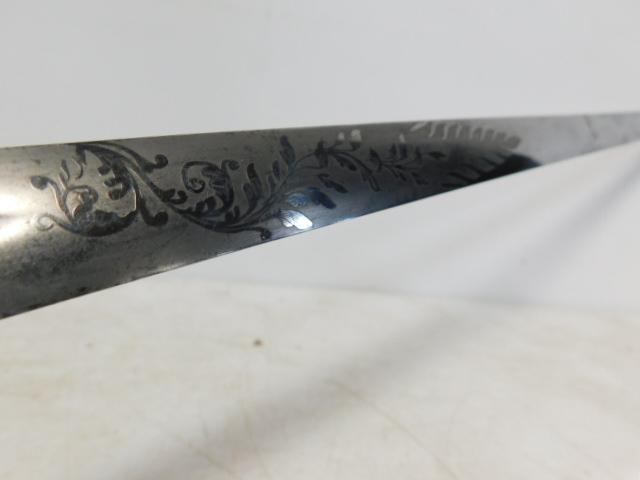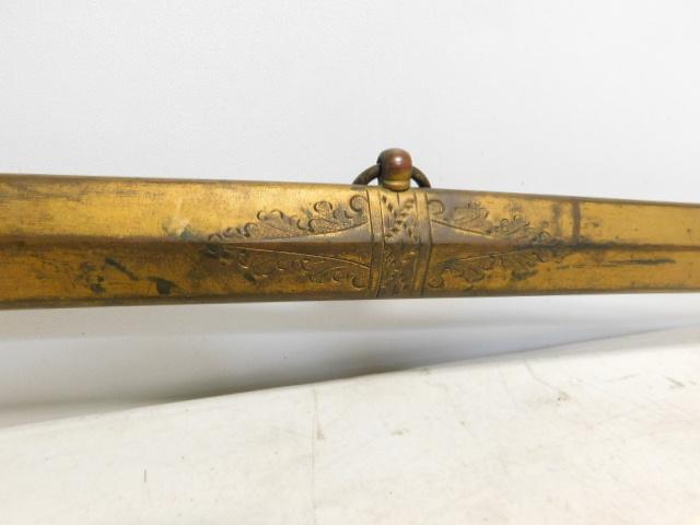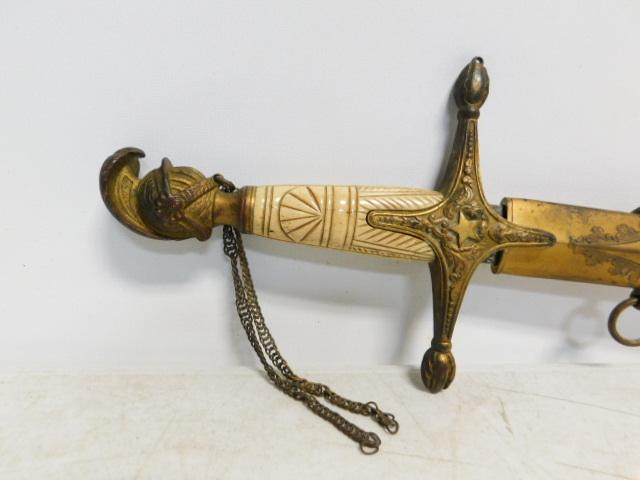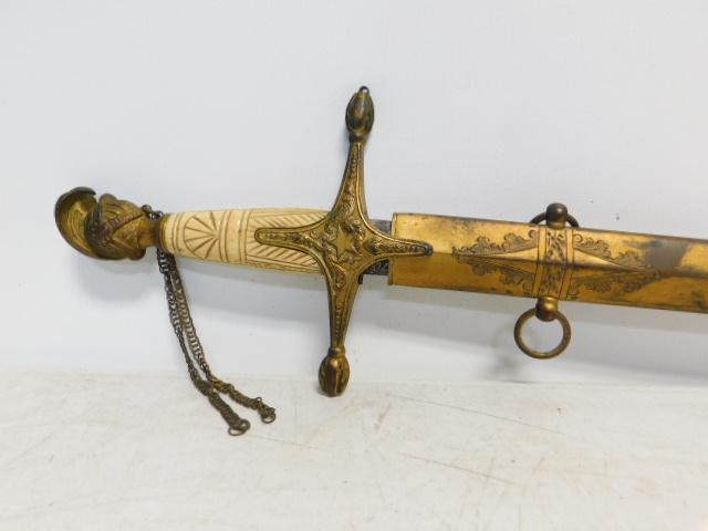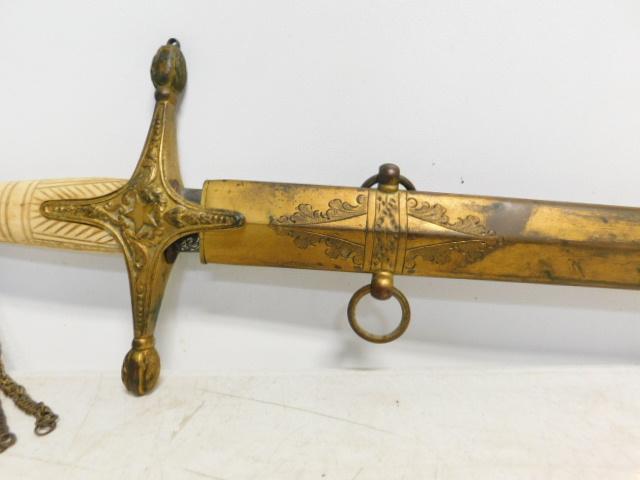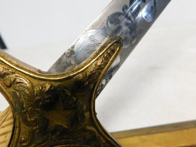 Rare Antique Ames Mfg. Co. 1850-1860 Militia Officer Sword with Pressed Bone Handle and Sheath Scrolled Blade