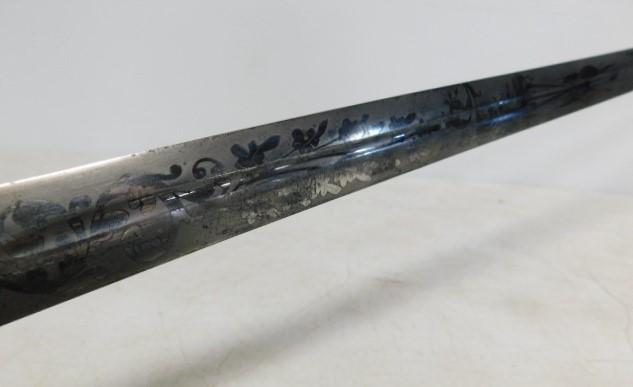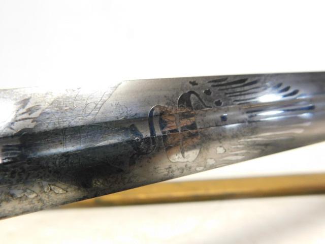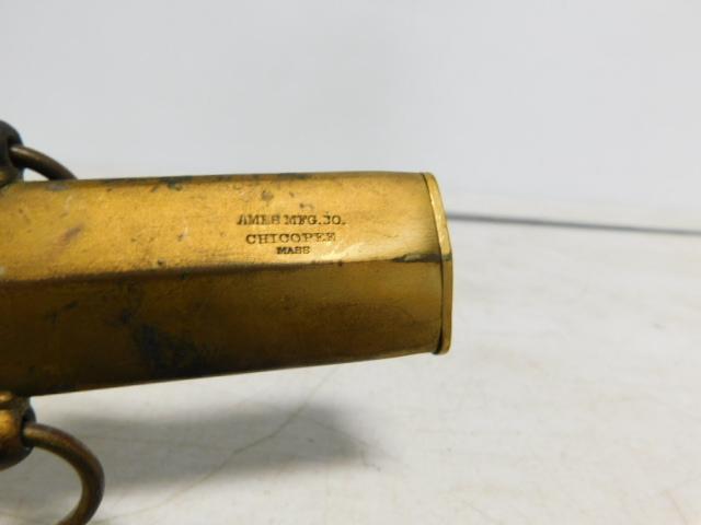 Rare Antique Ames Mfg. Co. 1850-1860 Militia Officer Sword with Pressed Bone Handle and Sheath Scrolled Blade some fading on sheath. Pummel has some wear. Blade has discolor at end and tip. Chicopee, MA marking helped with dating. Some hand scrolling is apparent on blade. Owned by Confederate officer Colonel Cicero Coleman Kentucky Regiment Lexington KY. Nice item and very rare