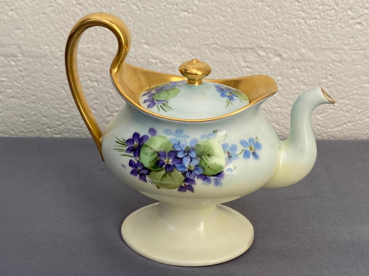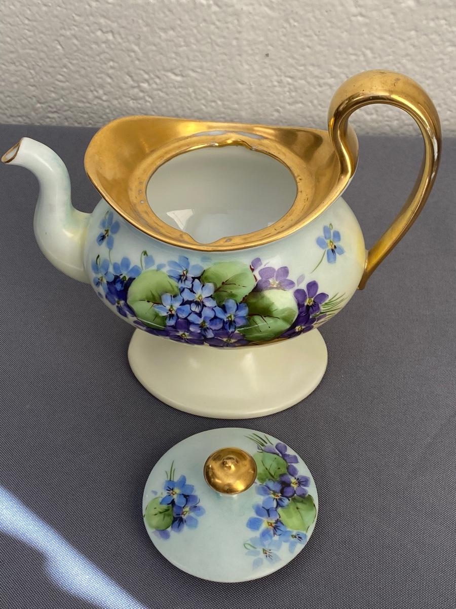 Antique T &V Limoges Handpainted Purple Violet Teapot