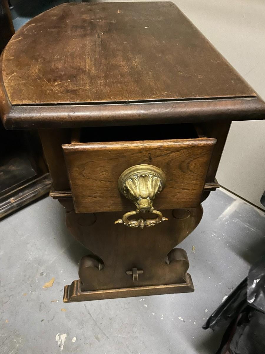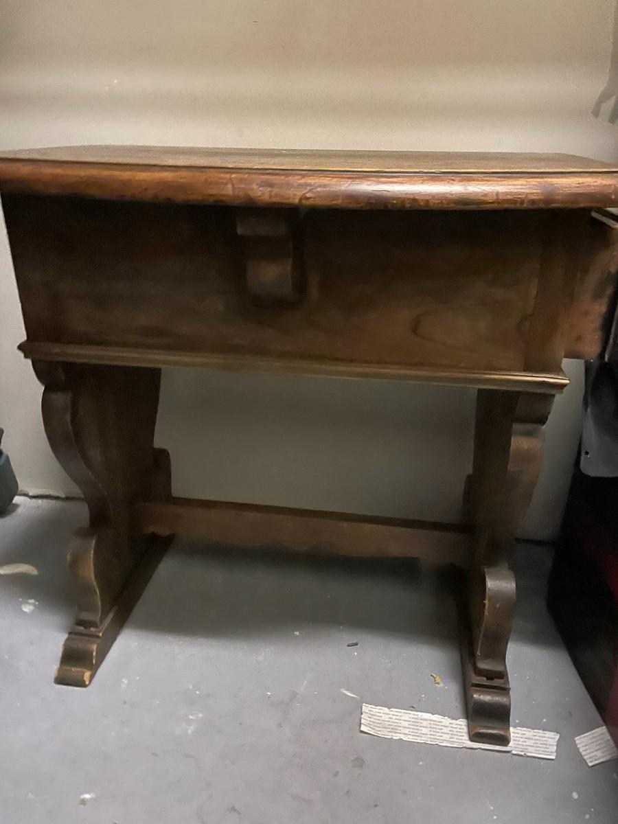 Small wooden Antique table with 2 drawers 25" T x 27 1/2" W x 17 D