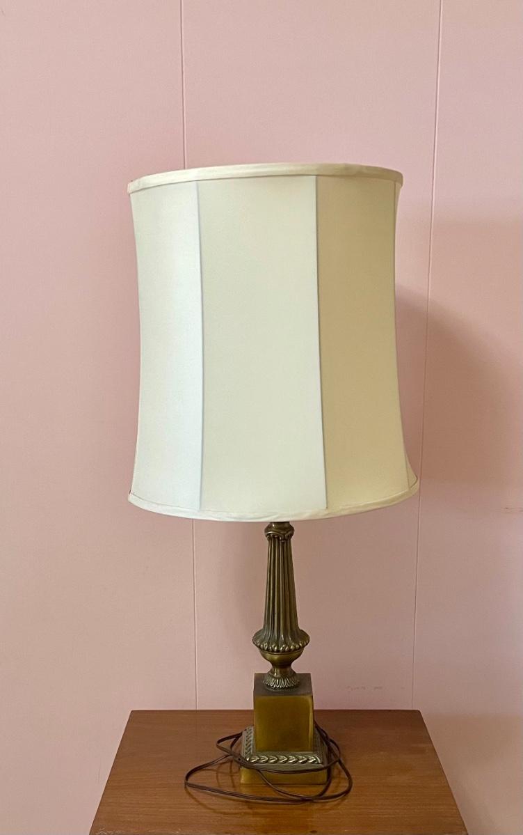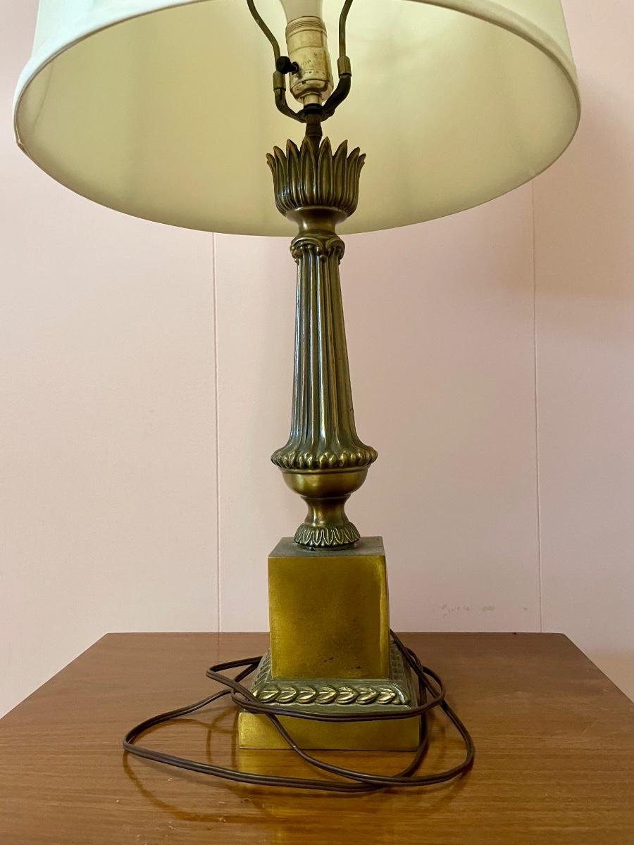 Antique Table Lamp - Heavy Brass & Marble Base - Hollywood Regency Style