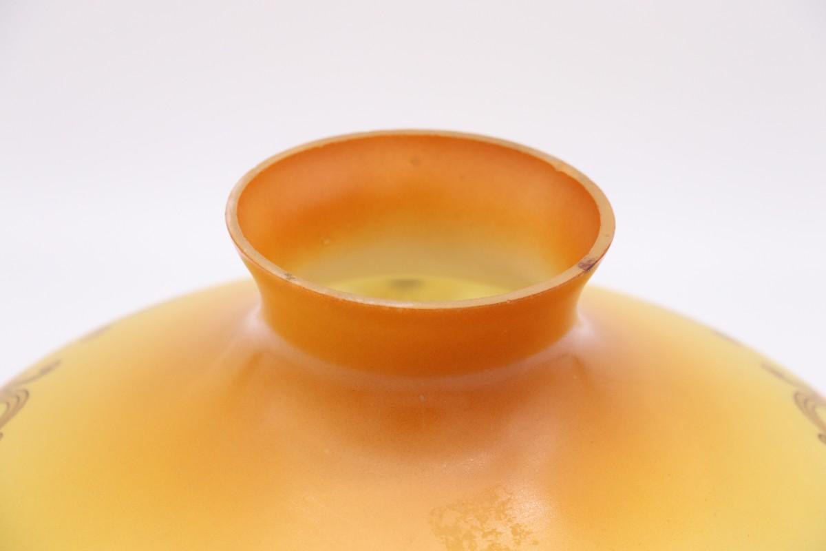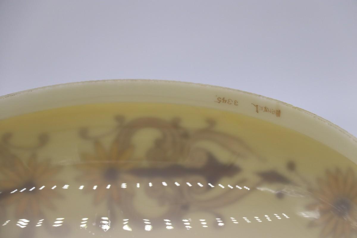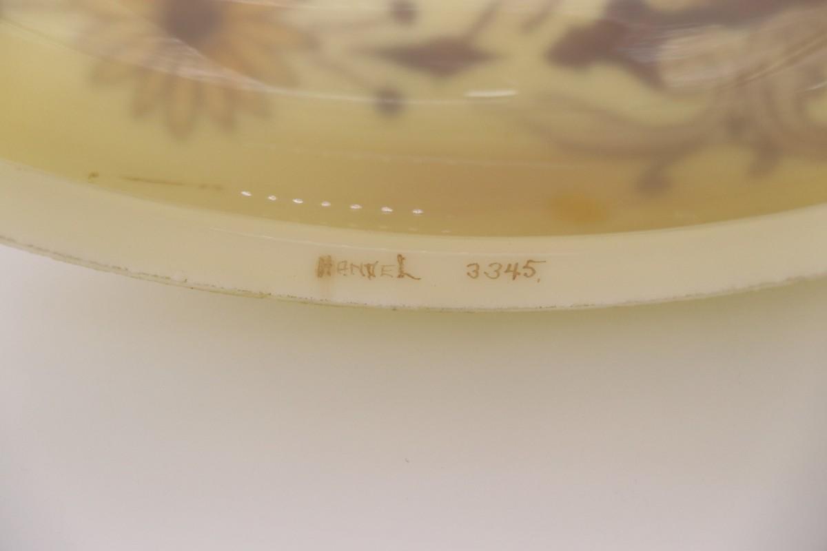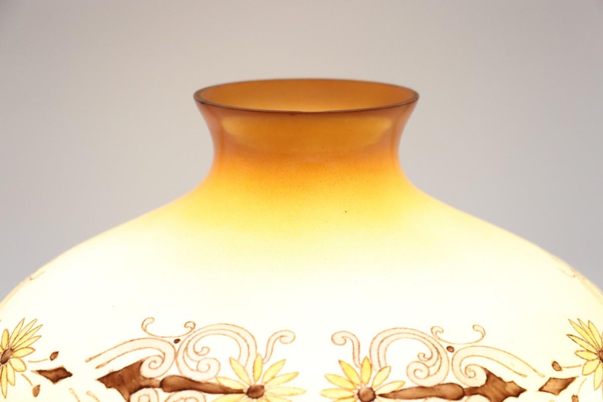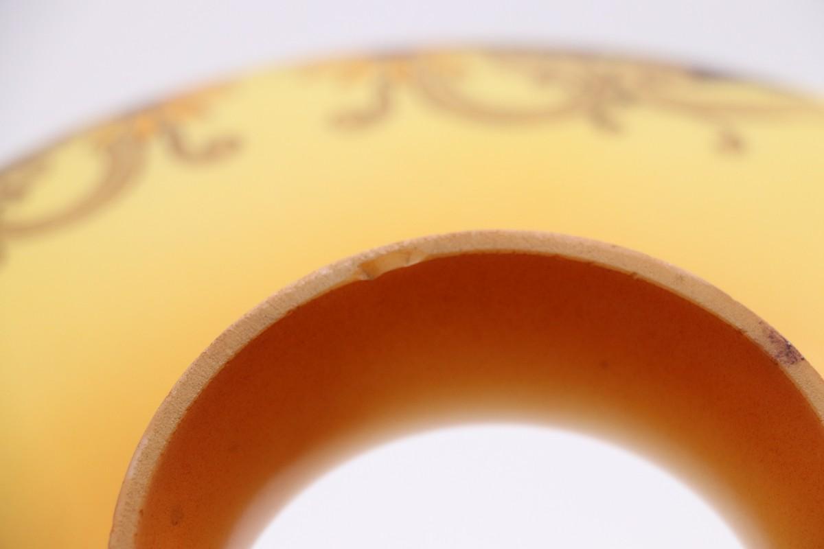 Antique Tam O Shanter Kerosene Lamp Shade Attributed to Handel. 10 inch base. Vintage yellow, orange, and brown floral pattern painted onto shade. Singed and numbered (Handel, 3345). From the estate of an antique store owner and lamp enthusiast. Condition as shown.