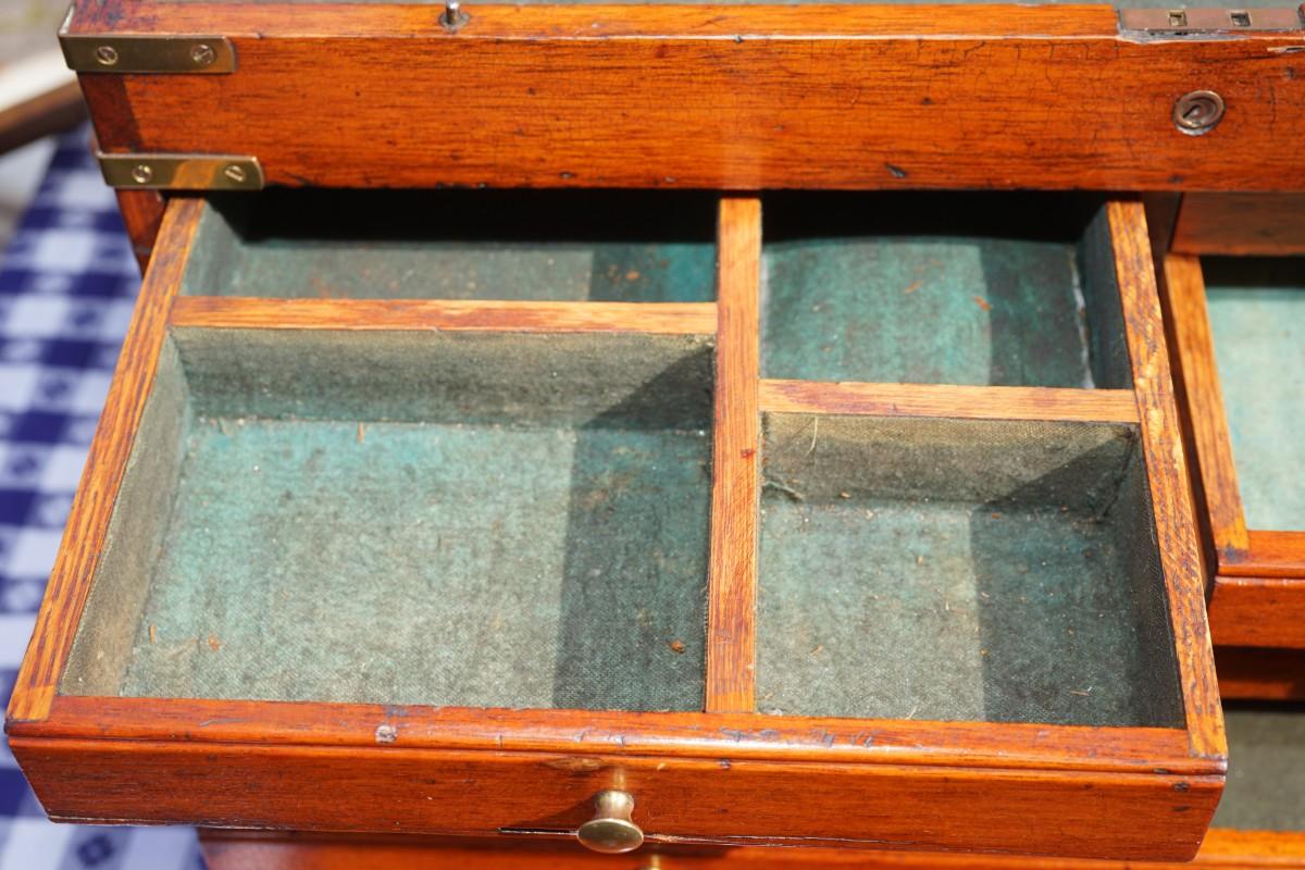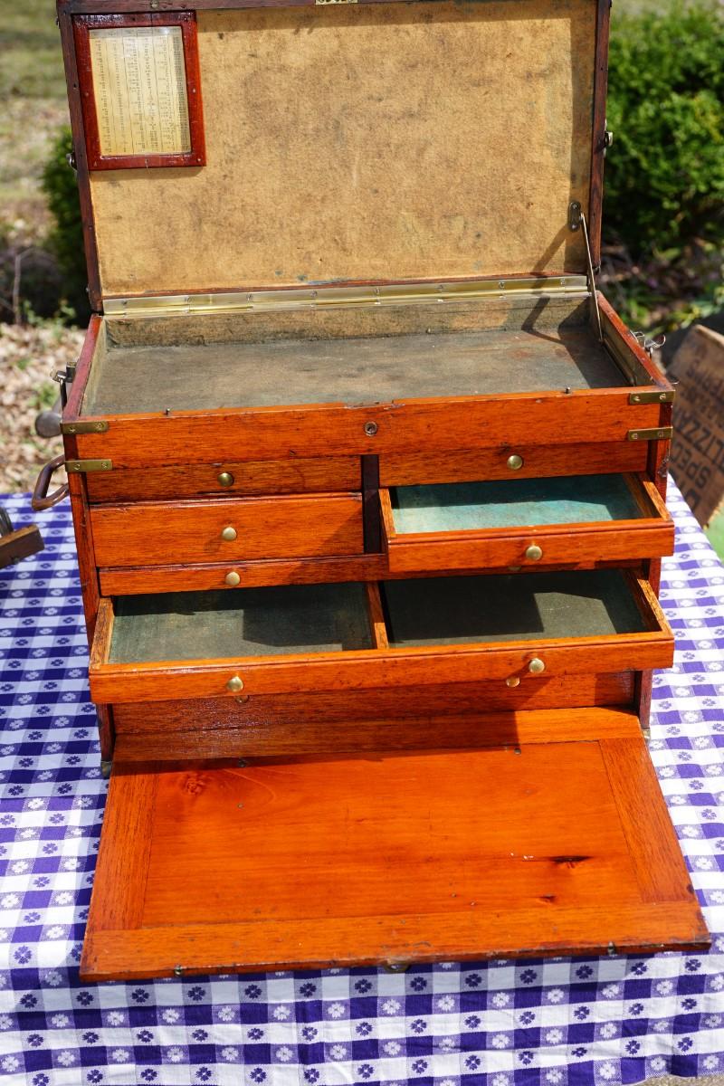 There is information on a coated piece of paper on the interior of the lid with tool and die measurements