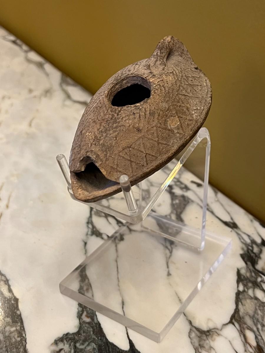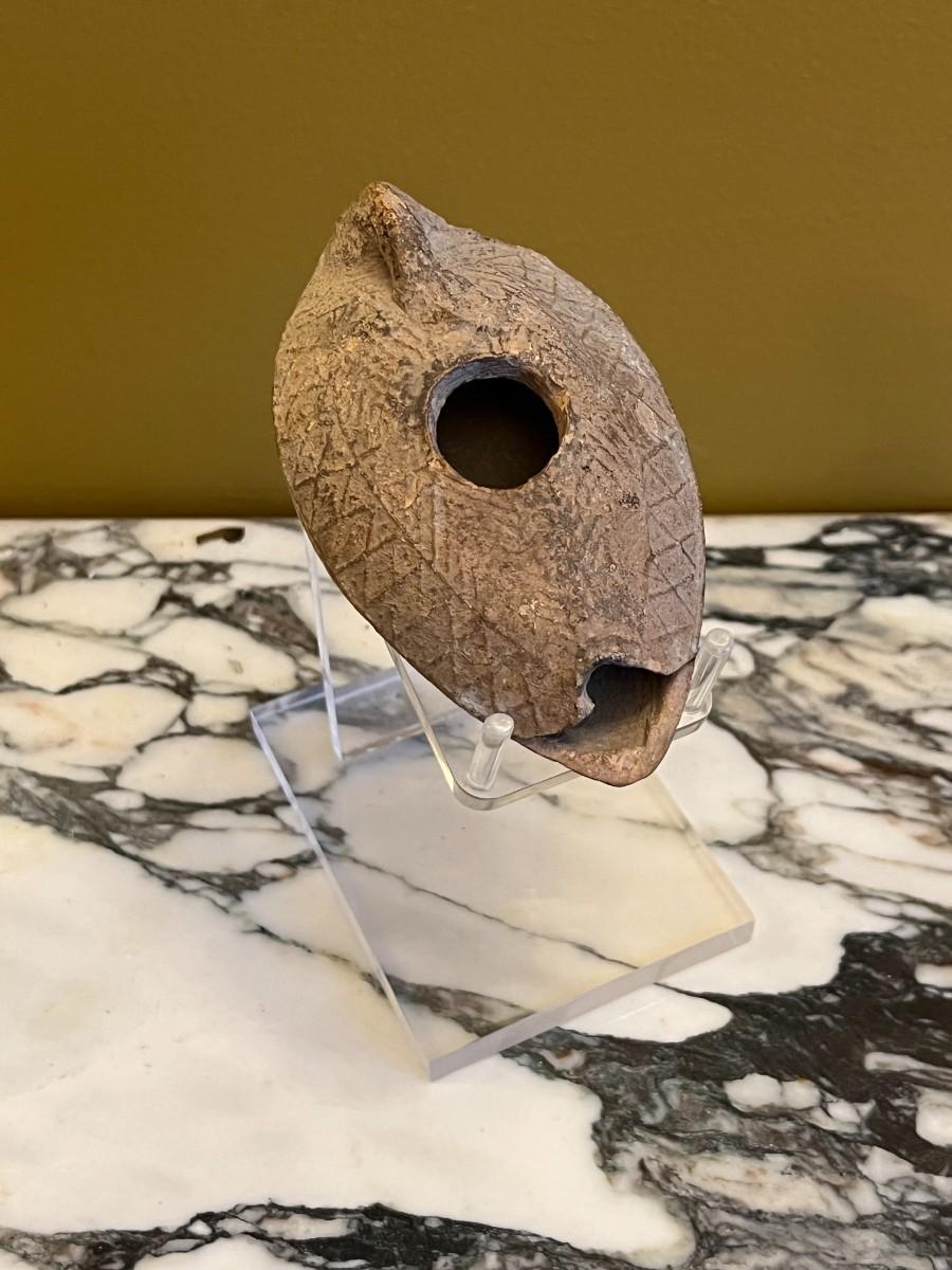 Antique Terracotta Oil Lamp w/ Display Pedestal