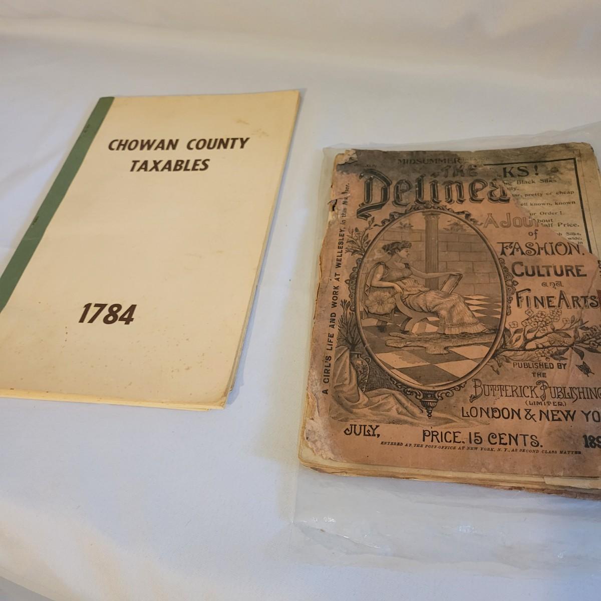 And antique publication of The Delineator issued in July of 1894. Magazine is in fair condition. Some pages are loose, missing or torn. Also included is a copy of tax records for Chowan Co from 1784 that was printed in 1965 and is in good condition. Shipping available.
