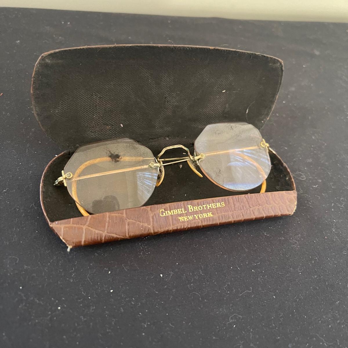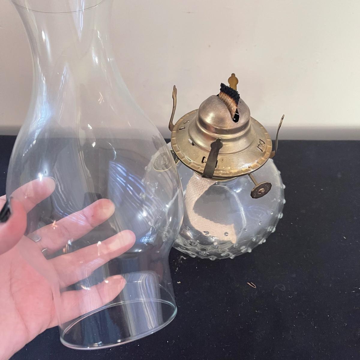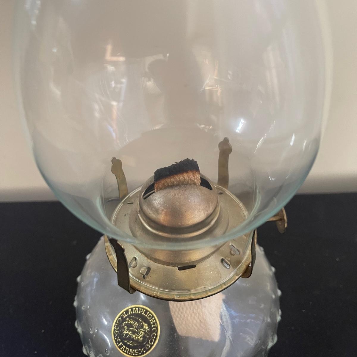 This antique flare lot includes a clear glass oil lamp by Lamp Light Company a book, and a pair of eyeglasses. The oil lamp has an almost new wick and is very clean. The glasses come in a case that say Grimbel Brother’s NY. The book is a book on identifying American antiques. Shipping available.