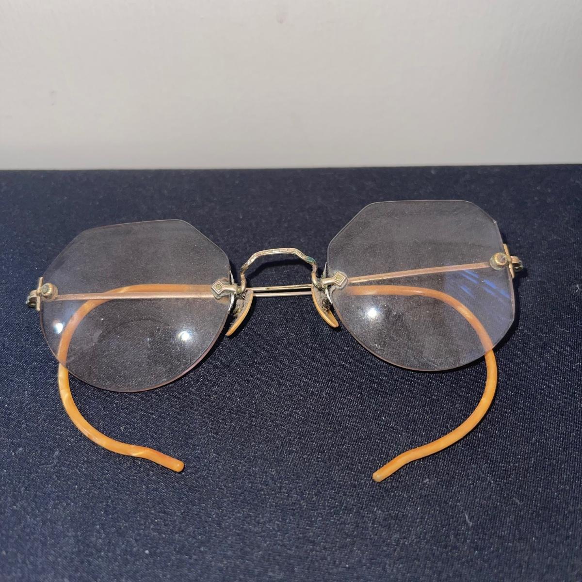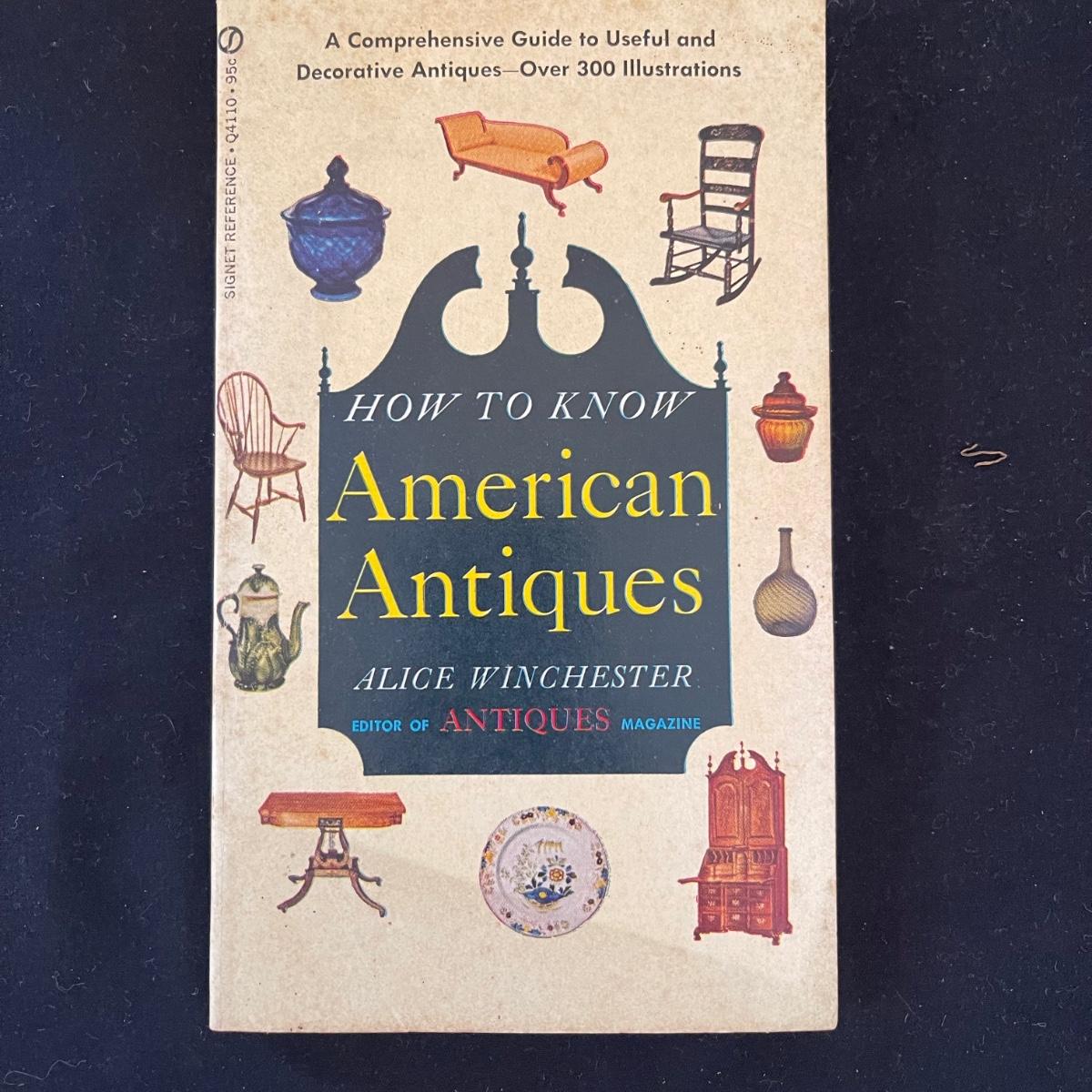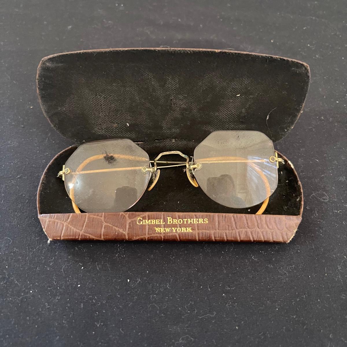 This antique flare lot includes a clear glass oil lamp by Lamp Light Company a book, and a pair of eyeglasses. The oil lamp has an almost new wick and is very clean. The glasses come in a case that say Grimbel Brother’s NY. The book is a book on identifying American antiques. Shipping available.