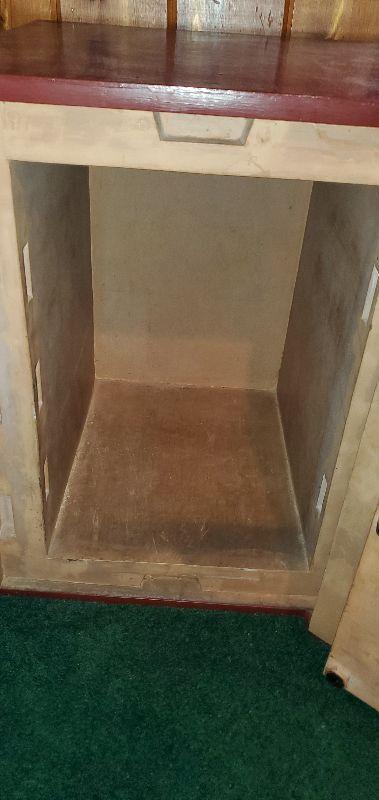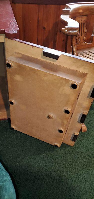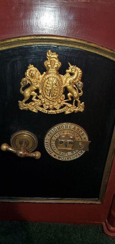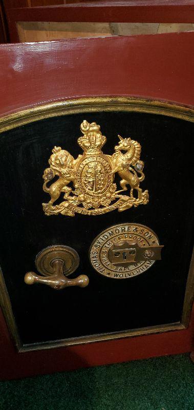 A good medium sized fire safe in excellent condition still retaining the internal drawers with locks by Thomas Skidmore & Son of Wolverhampton. Externally the brass work in great condition and we have the key. It opens and closes perfectly. It measures 20" x 22" x 26" tall.