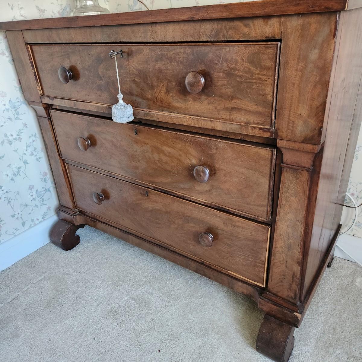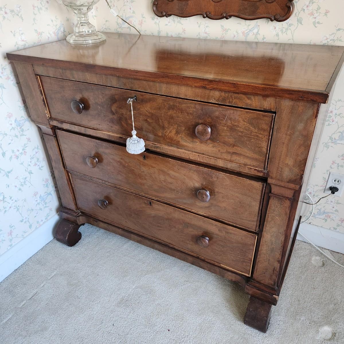 Antique American Empire 1800s Three Drawer Chest Dresser 44x20x37