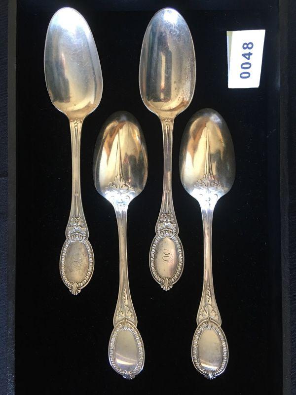 Set of 4 Tiffany Sterling Large Serving Spoons Set of 4 spoons. 278 grams. Good Tiffany sterling marks. Monogrammed.