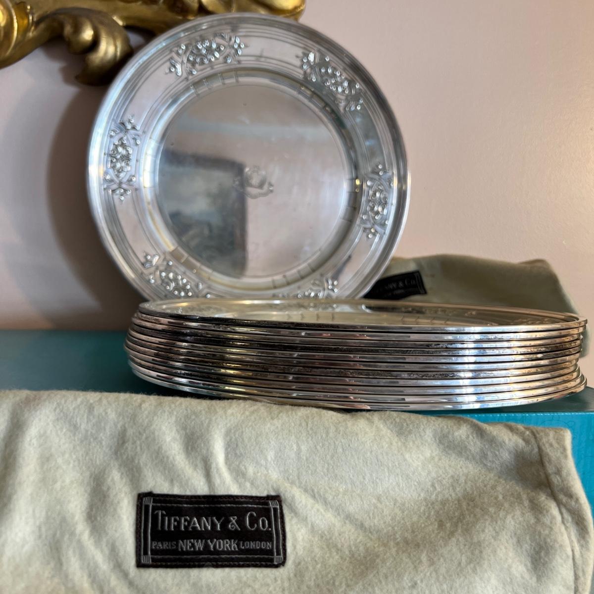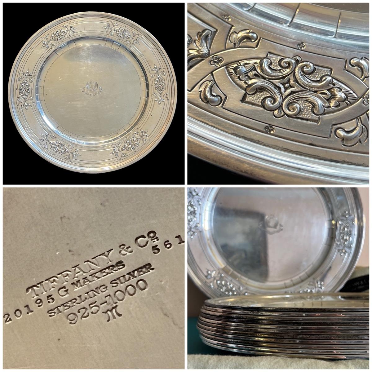 12 Antique Tiffany’s Sterling Silver Plates c. 1923-1924 w/ Original Storage Bags