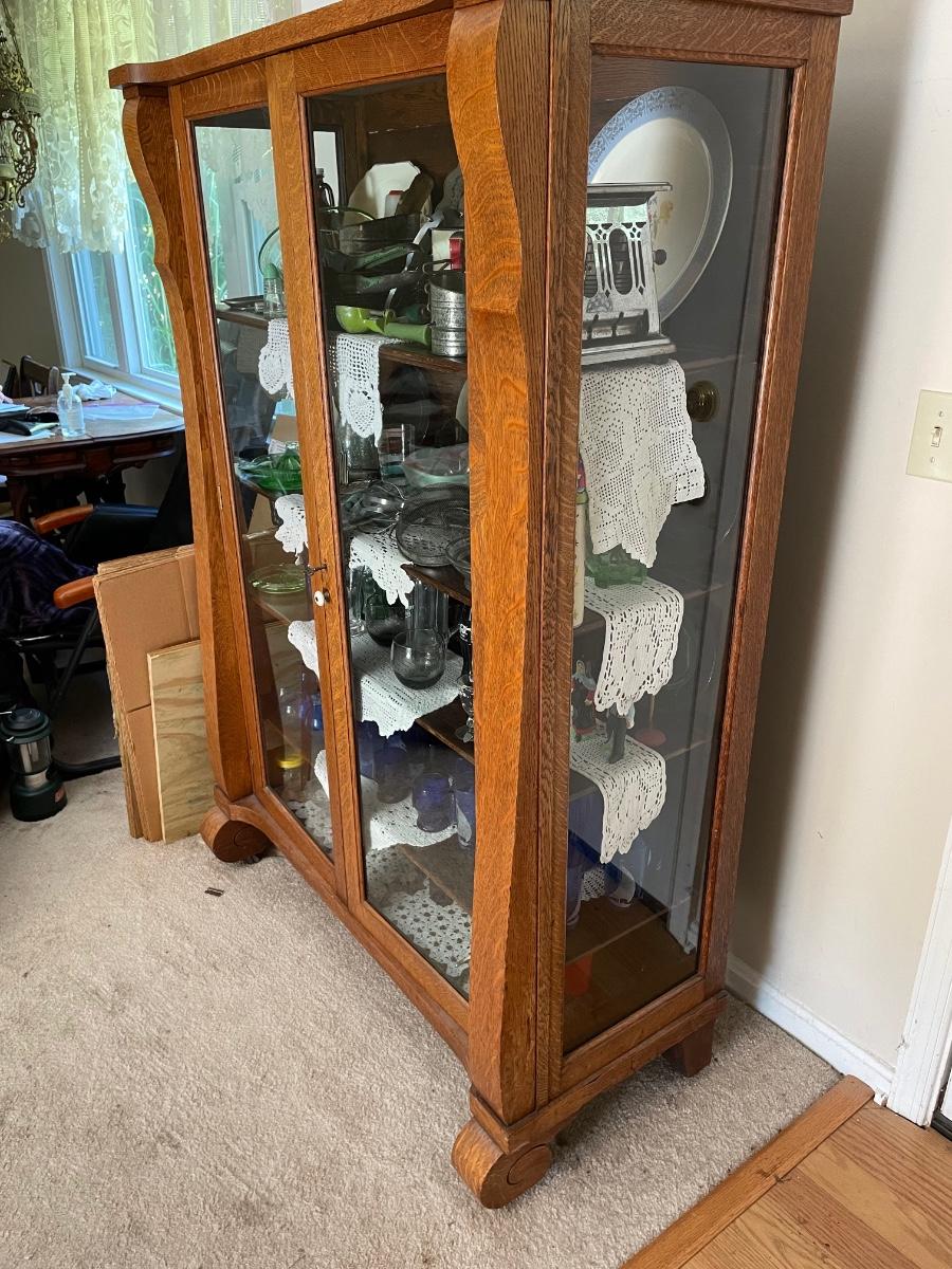 Antique Tiger Maple Display Case. Great Condition. Measures 43.5w x 18d x 52h