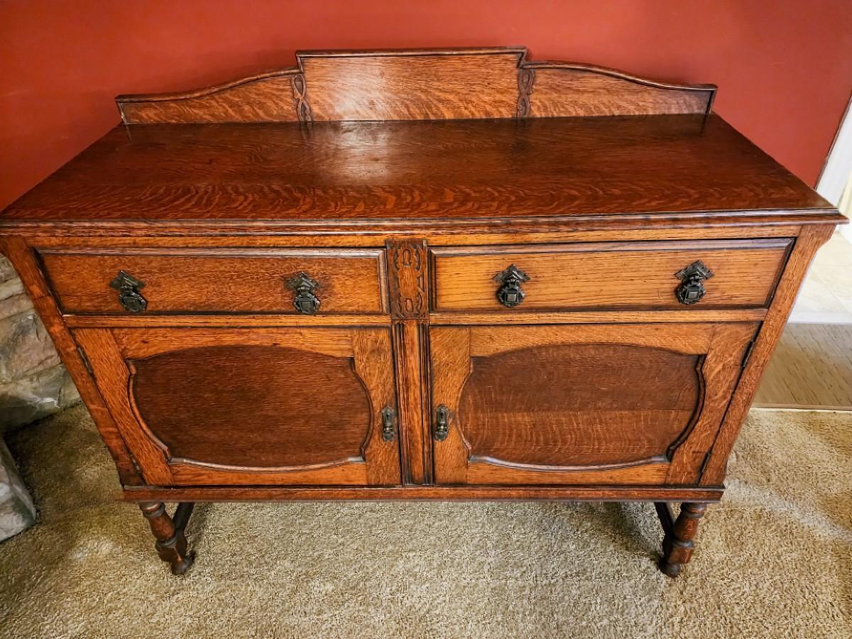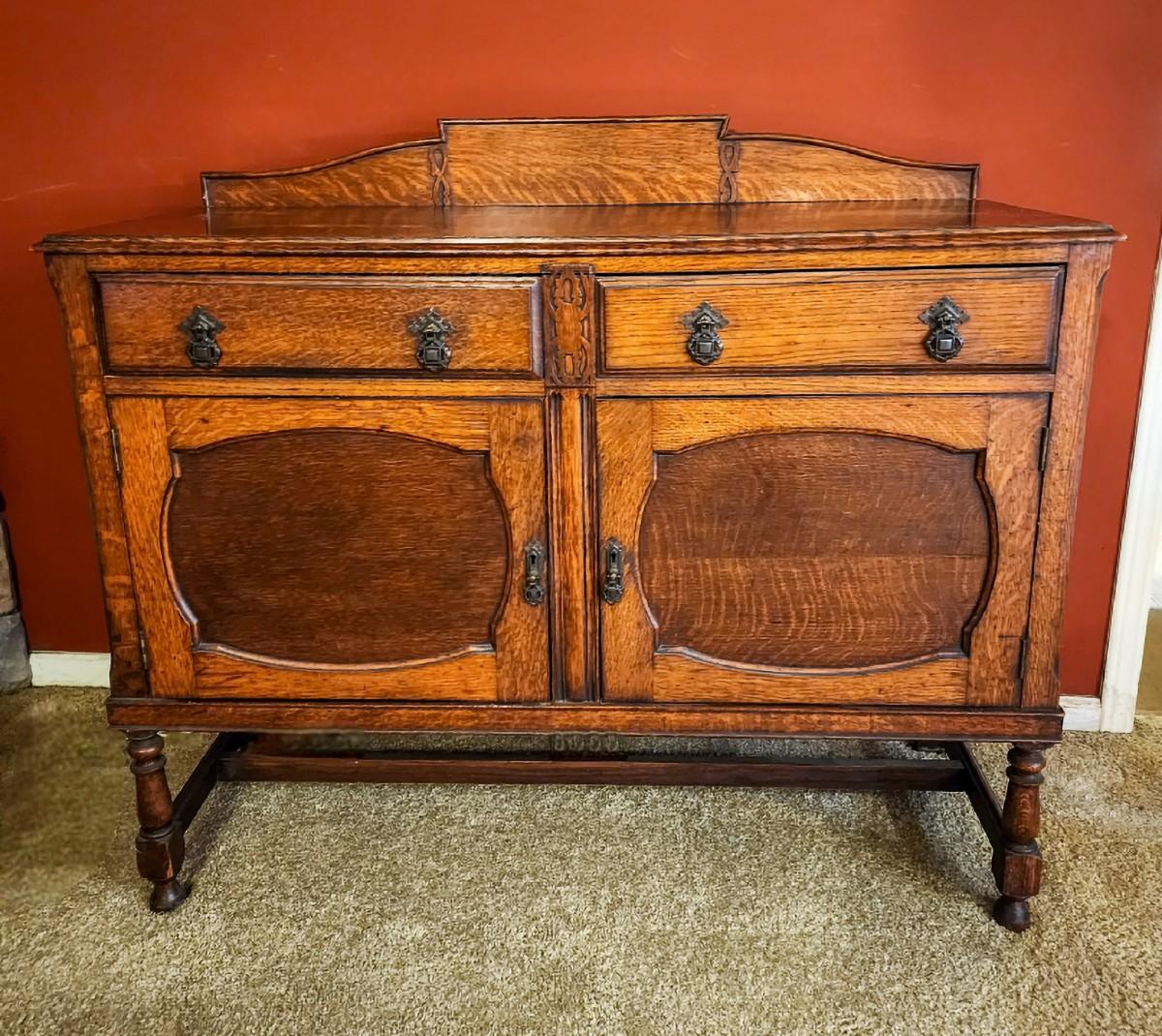 Beautiful antique tiger oak buffet. This item has no known major defects.