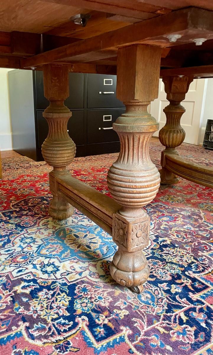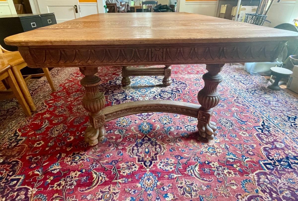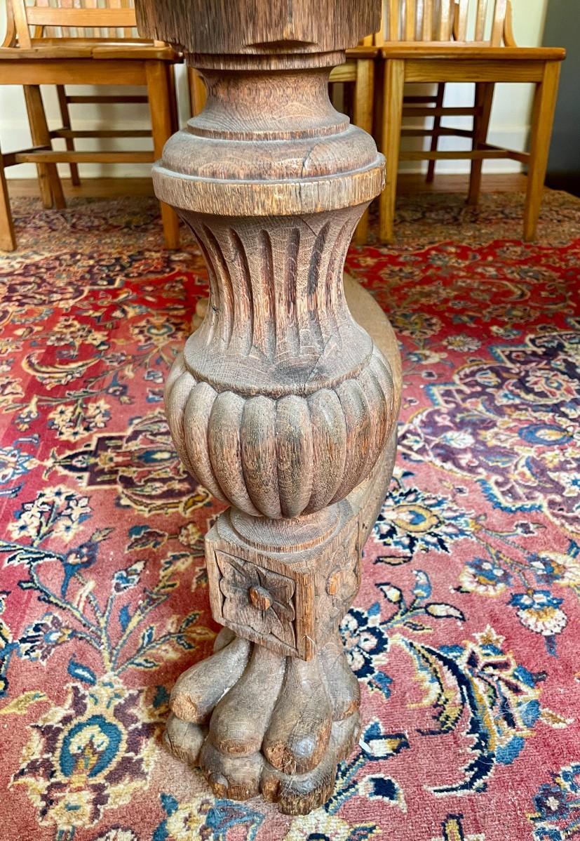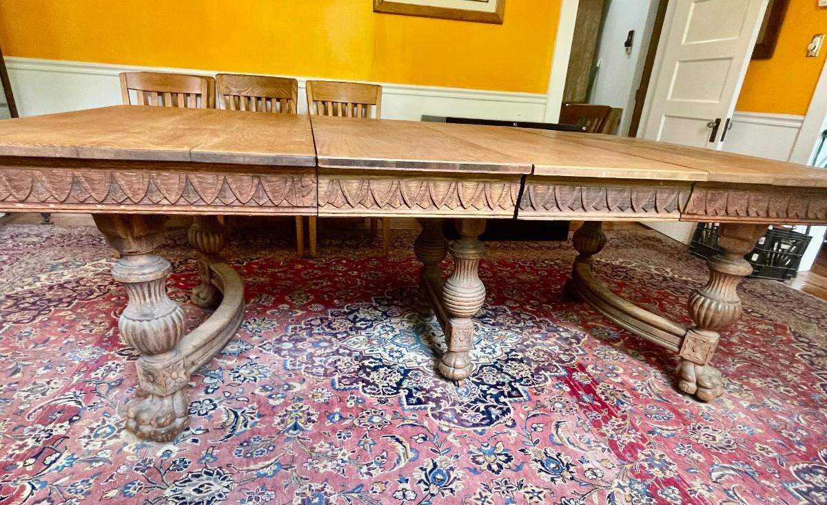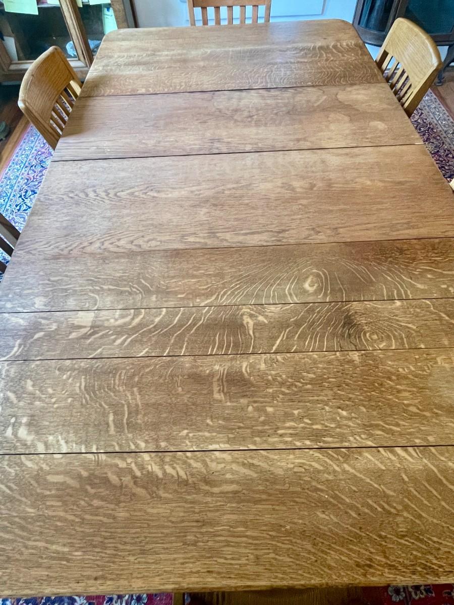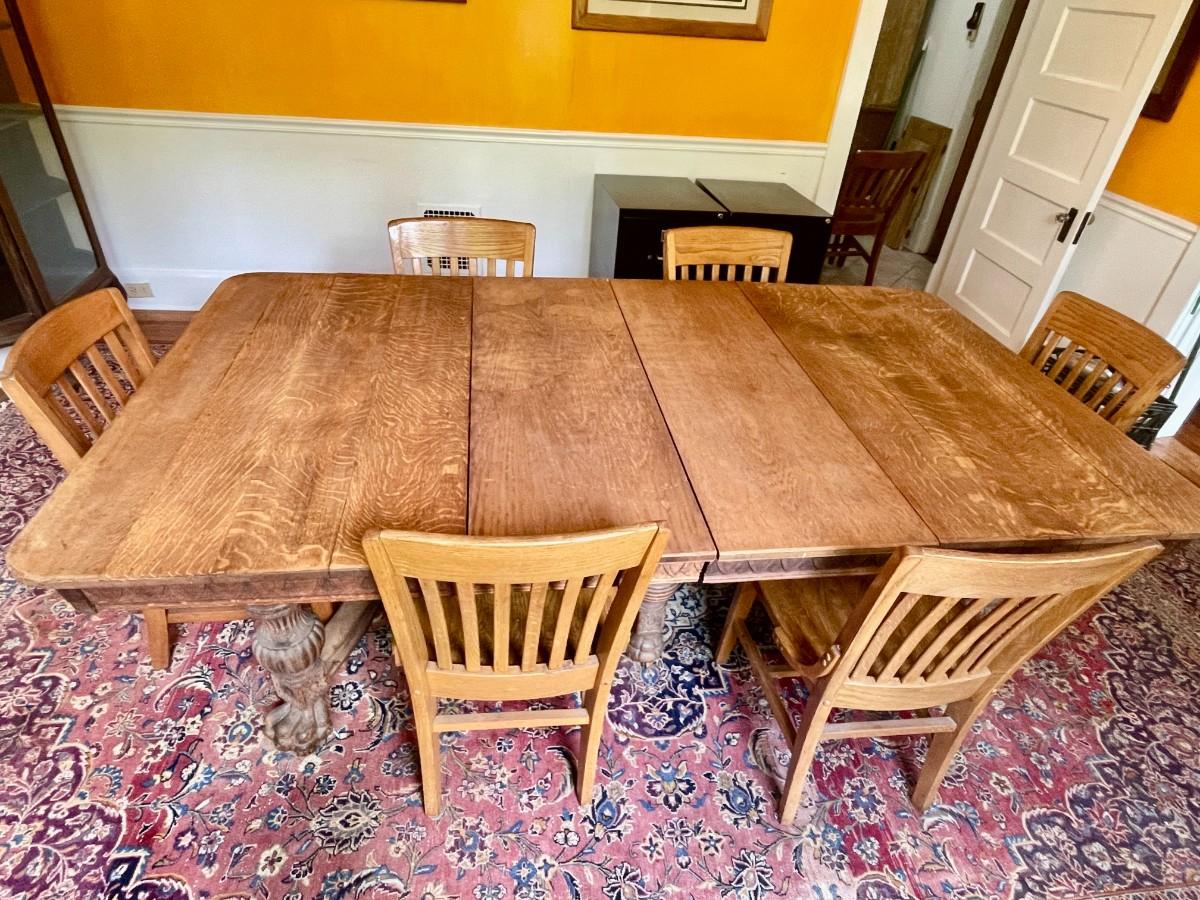 Antique tiger oak expandable claw-foot table & 6 oak chairs