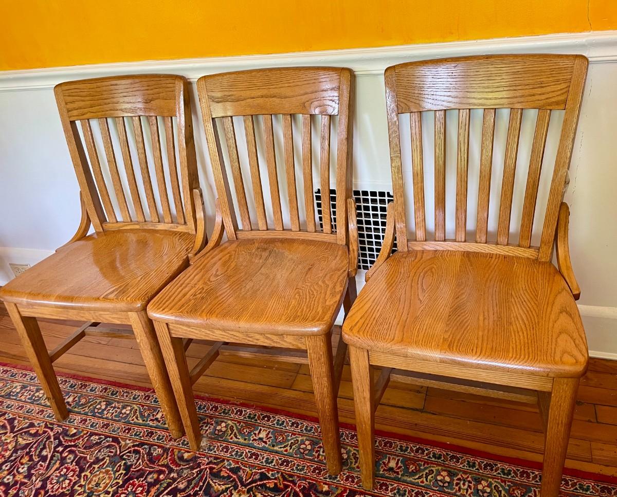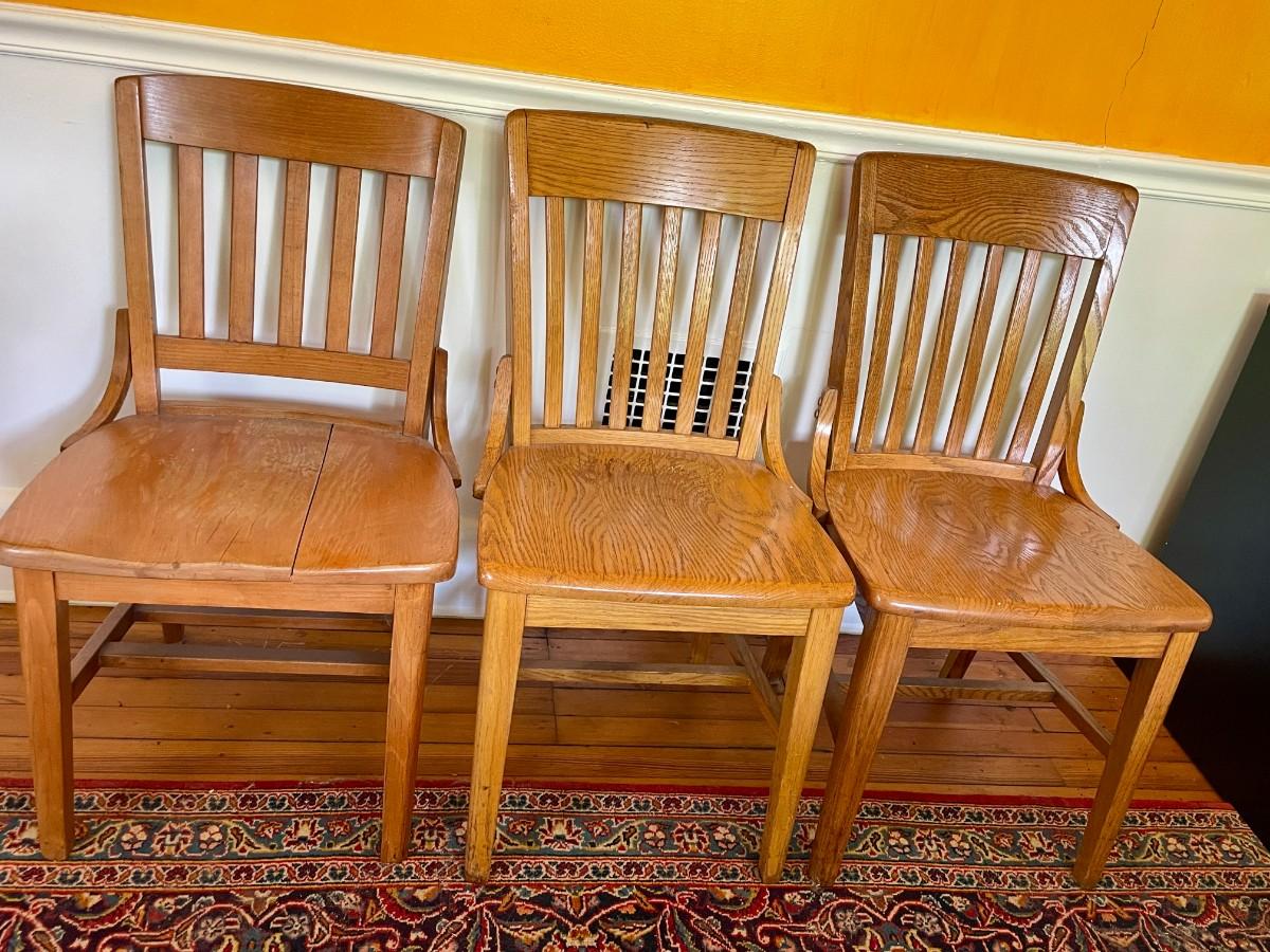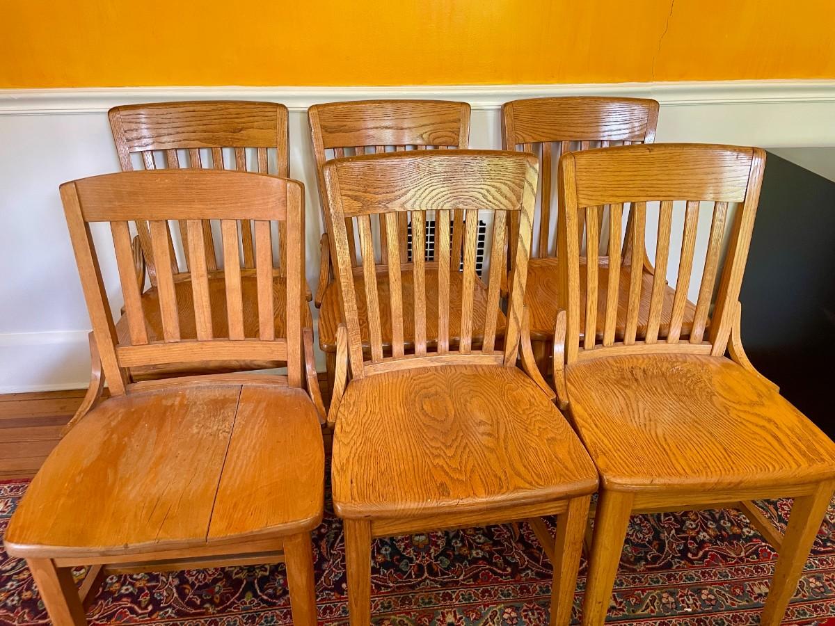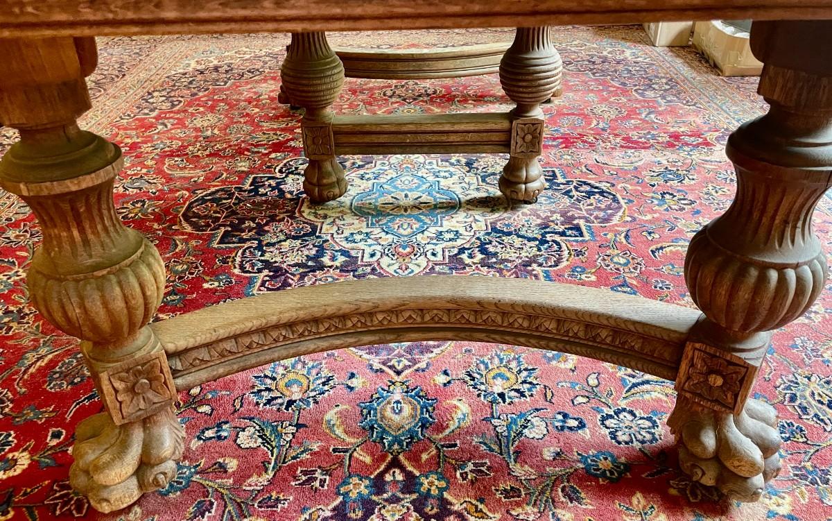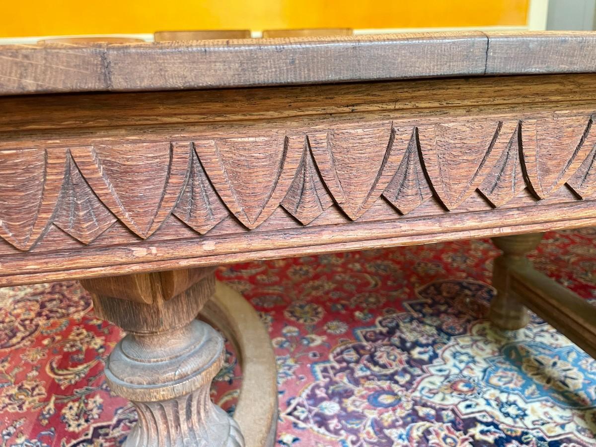 Antique tiger oak expandable claw-foot table & 6 oak chairs