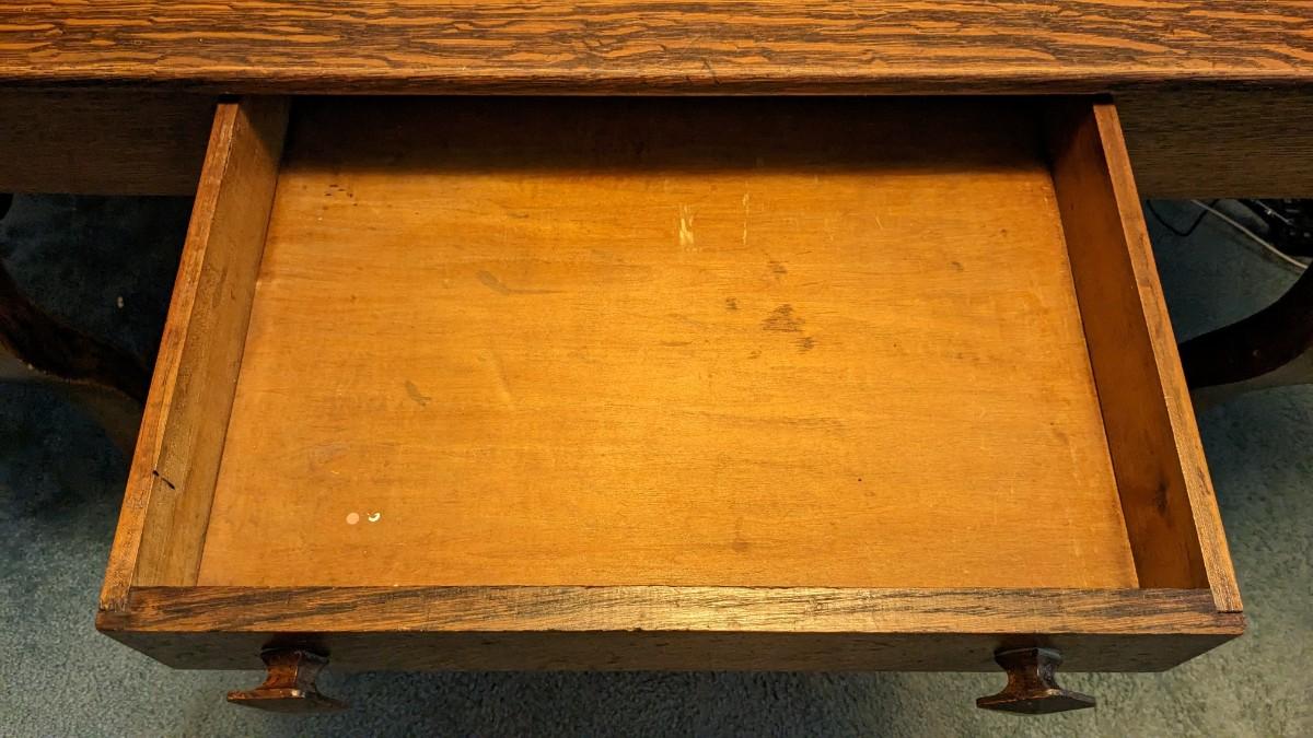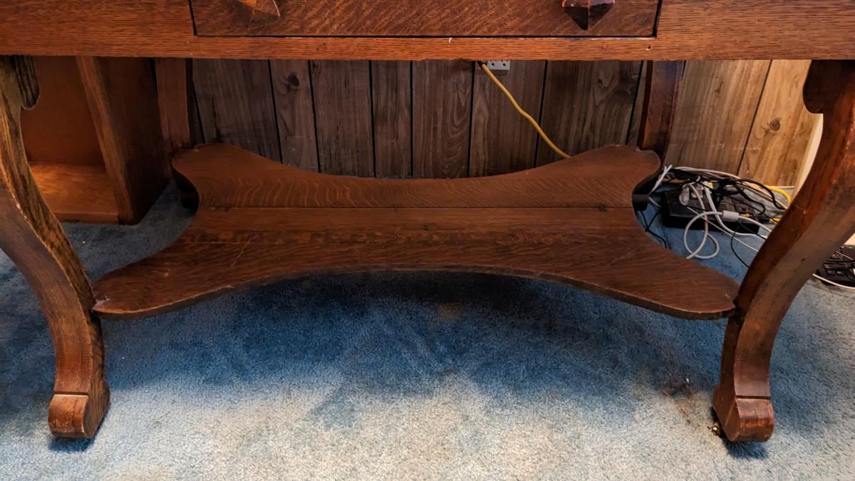 48" x 29.25 x 30.5" with shelf in base. A beautiful unmarked piece with very very minimal wear noted. A real stunner