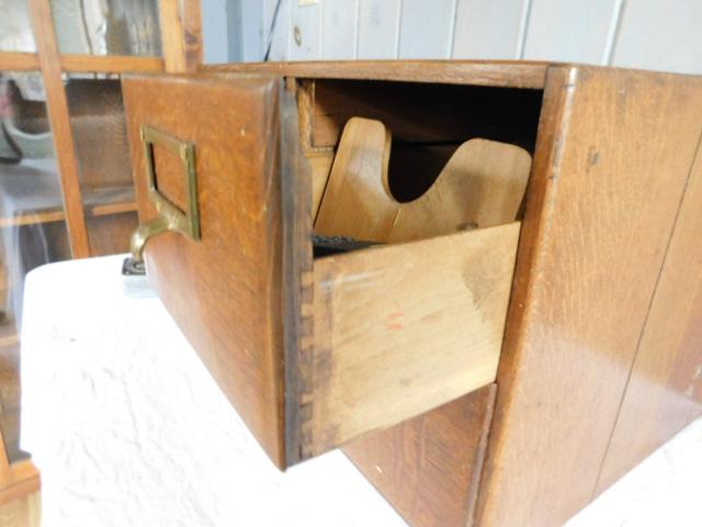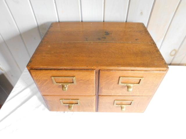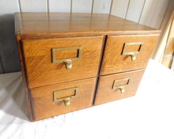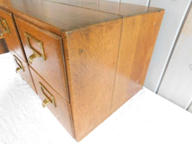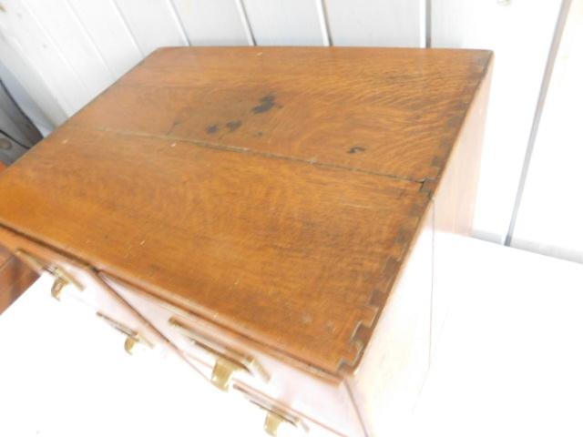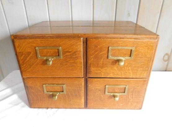 Antique Tiger Oak Solid Wood Four Drawer Desk Top Filing Box 20"x14"x13"