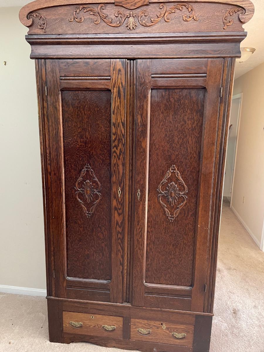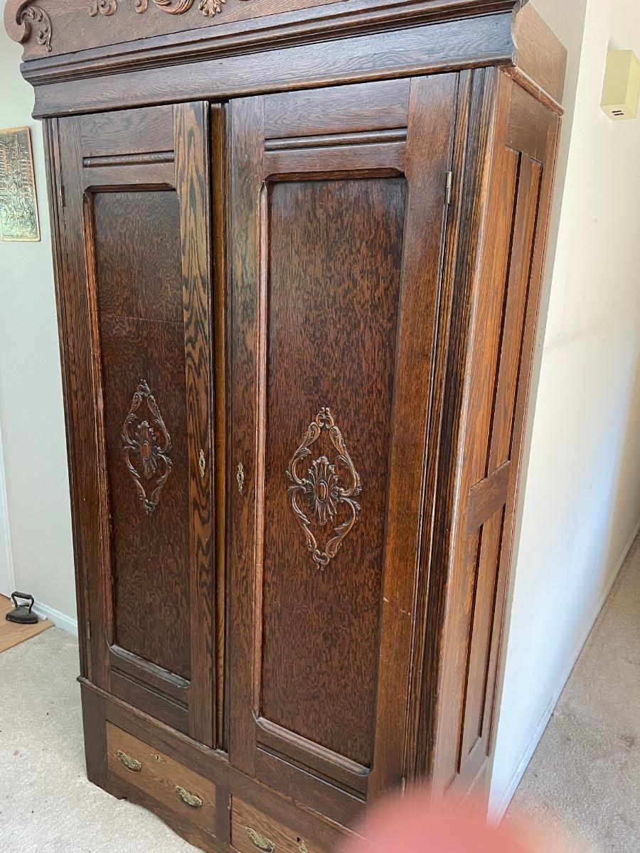 Antique Tiger Oak Wardrobe. Great Condition! Measures 50w x 18d x 92H