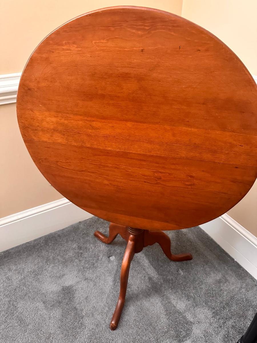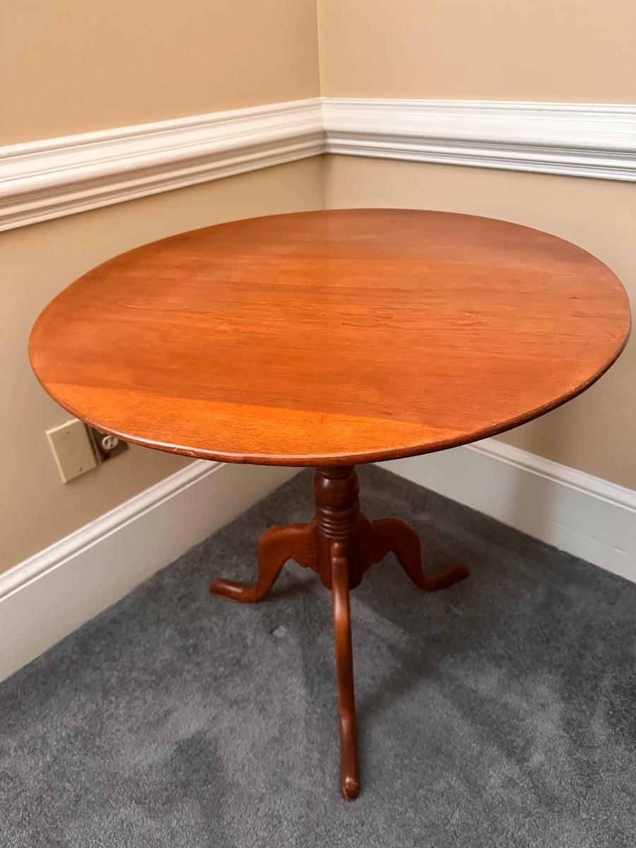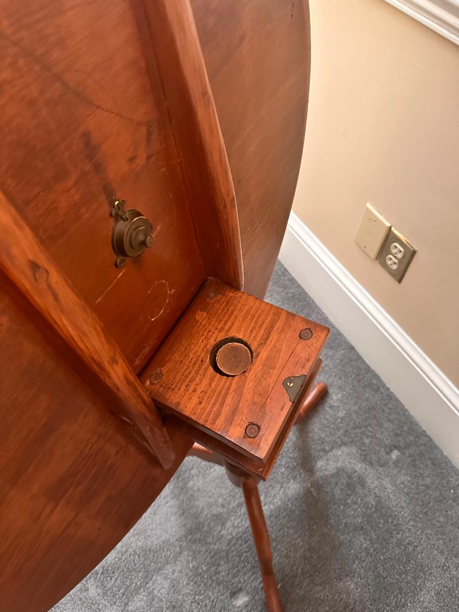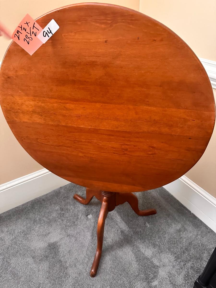 Antique Tilt Top Table 29.5x28.5T, Missing Wooden Dowel Pin As Pictured