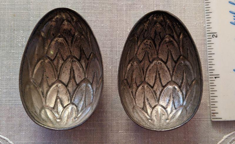 Antique Victorian tin Easter egg mold chocolate ice cream candy 2 pieces