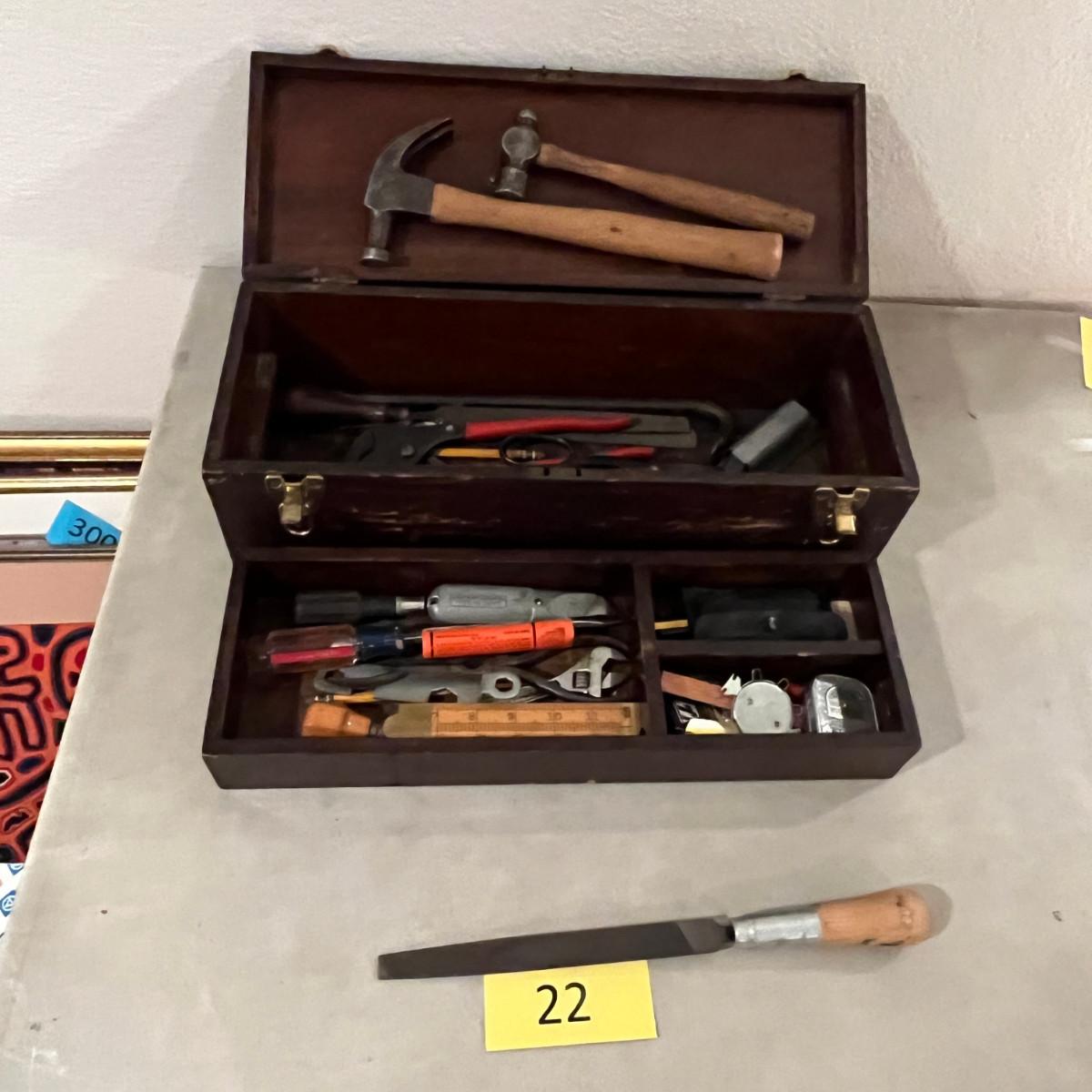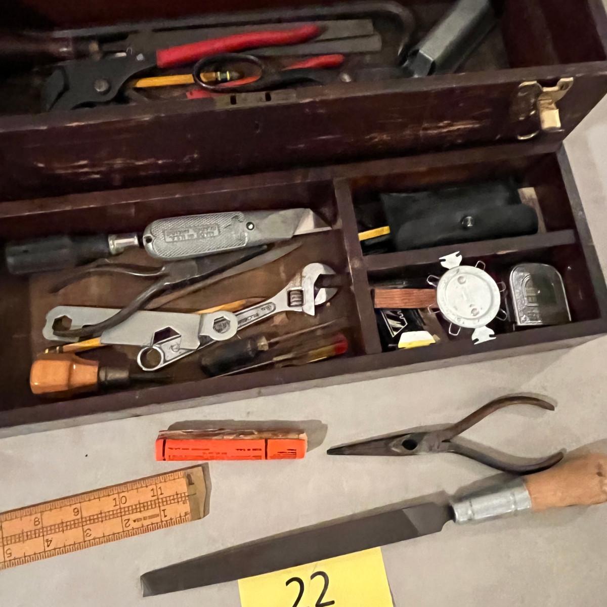 Antique tool box w/ tools