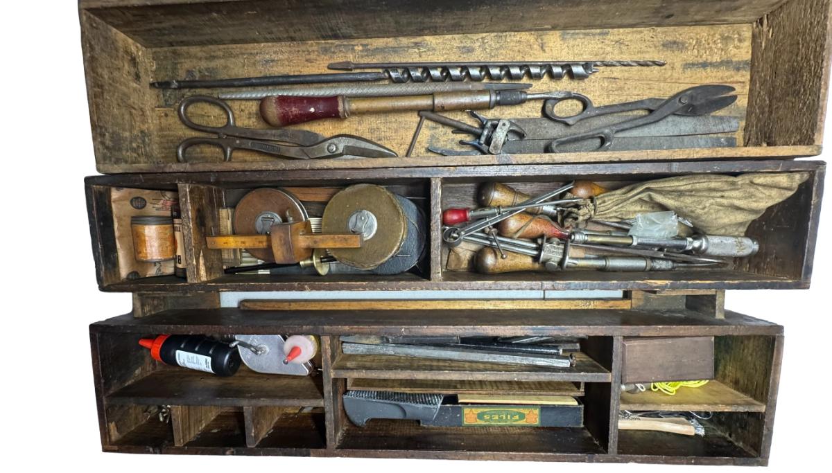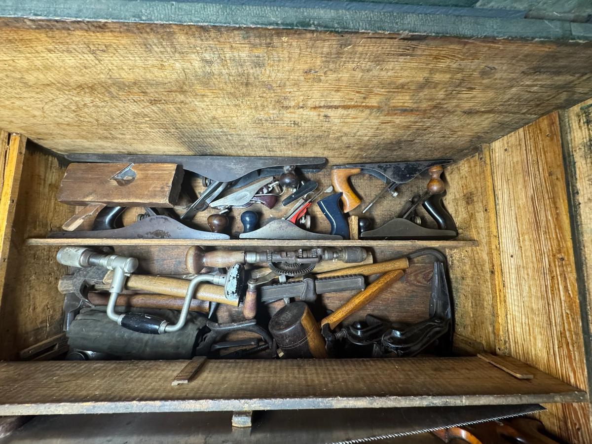 Antique Tool Chest with Antique and Vintage Woodworking Tools