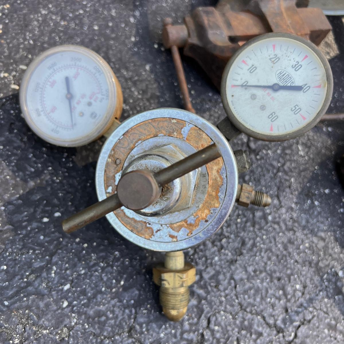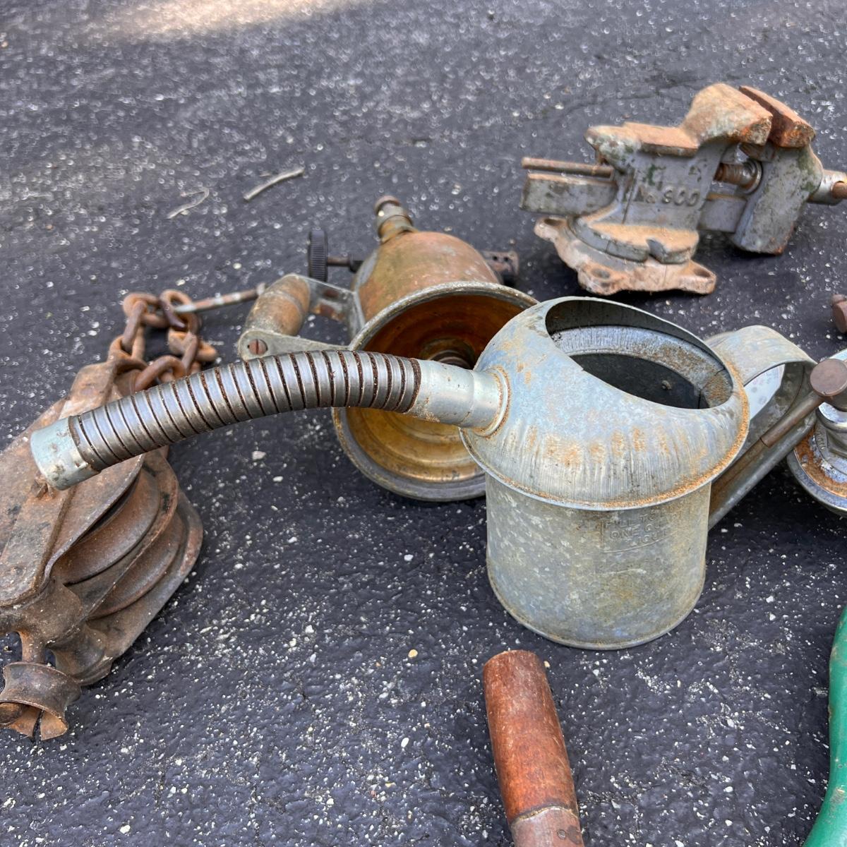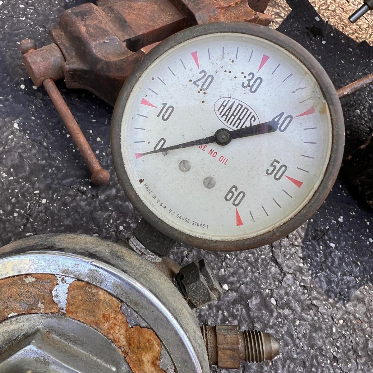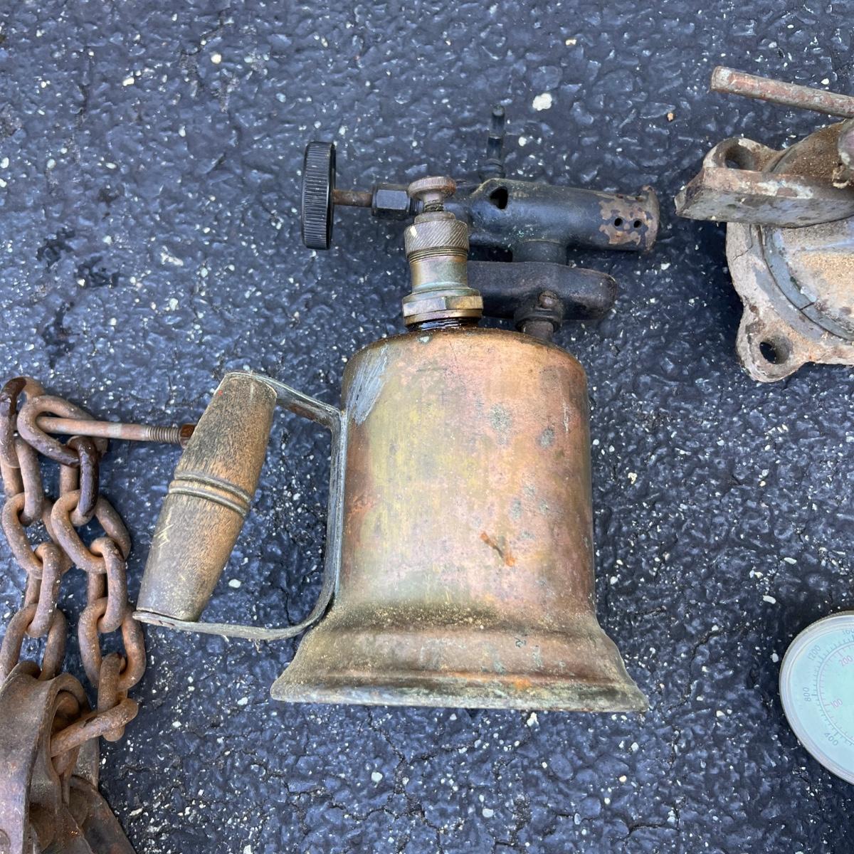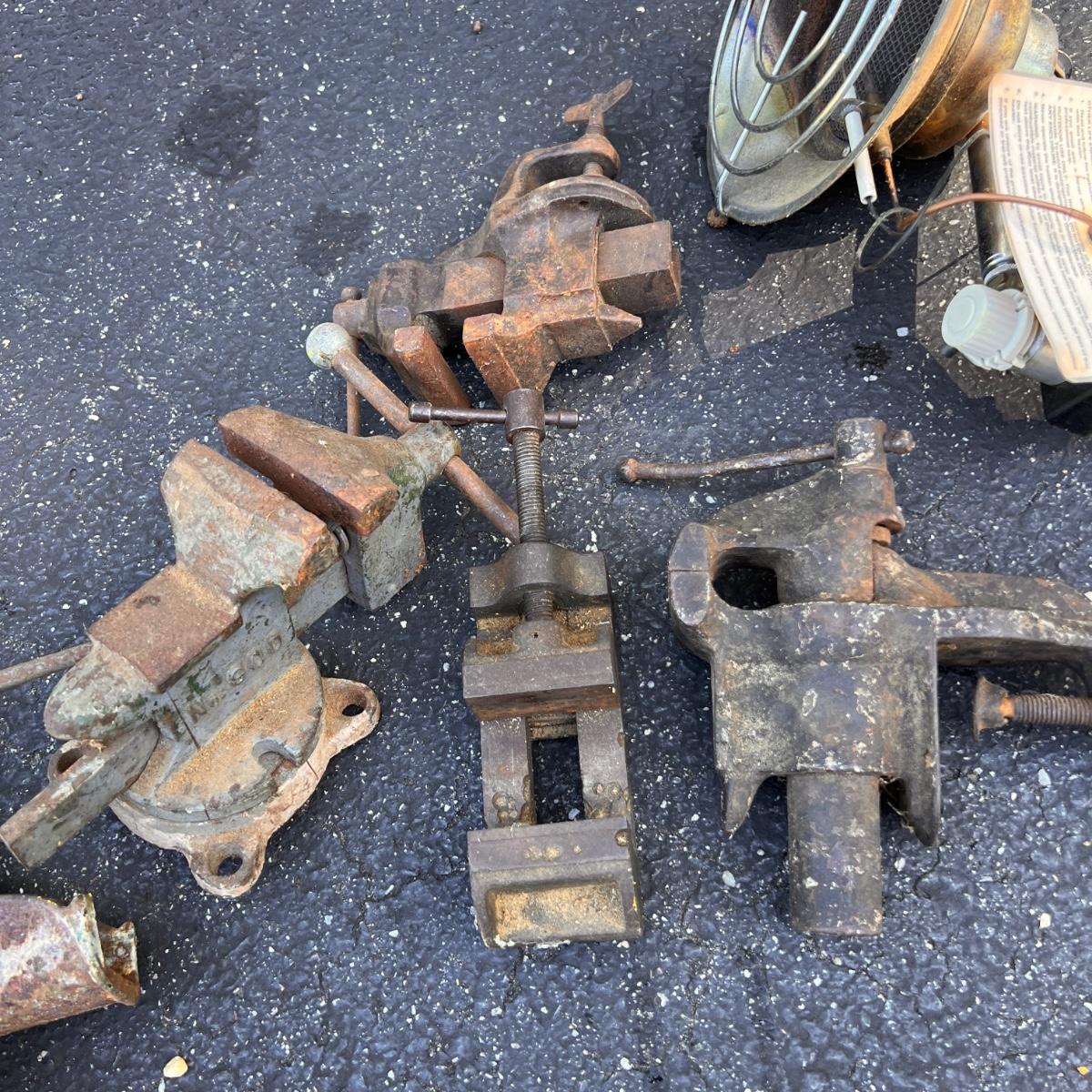 Antique wood handle Jorgensen Adjustable Clamp | Wooden Vise Clamp, antique Vintage cast iron hand water pump, brass hand torch, VICTOR inert gas regulator flowmeter, vices, and more. These have been stored in a shed. See pics for details and conditions.