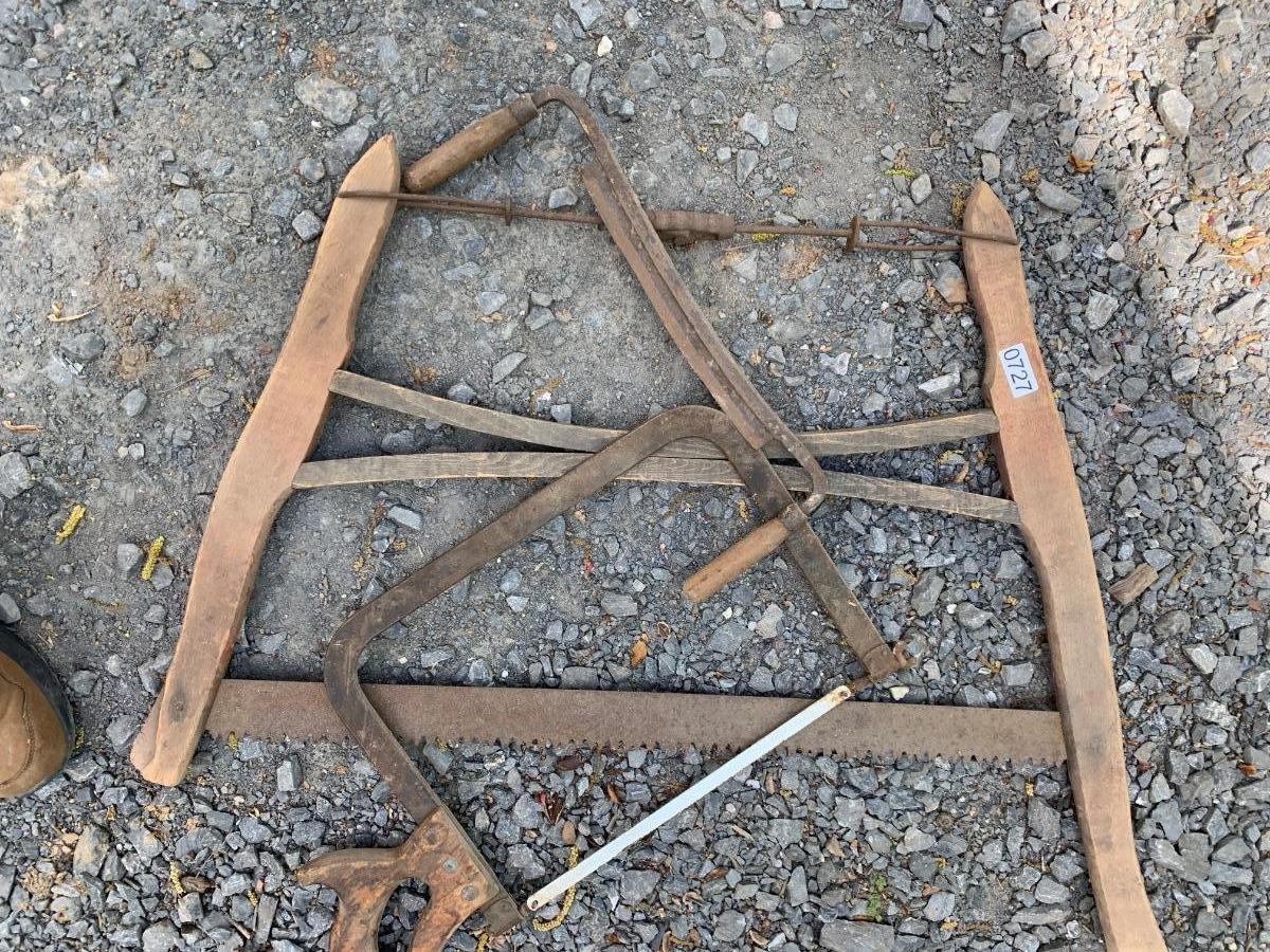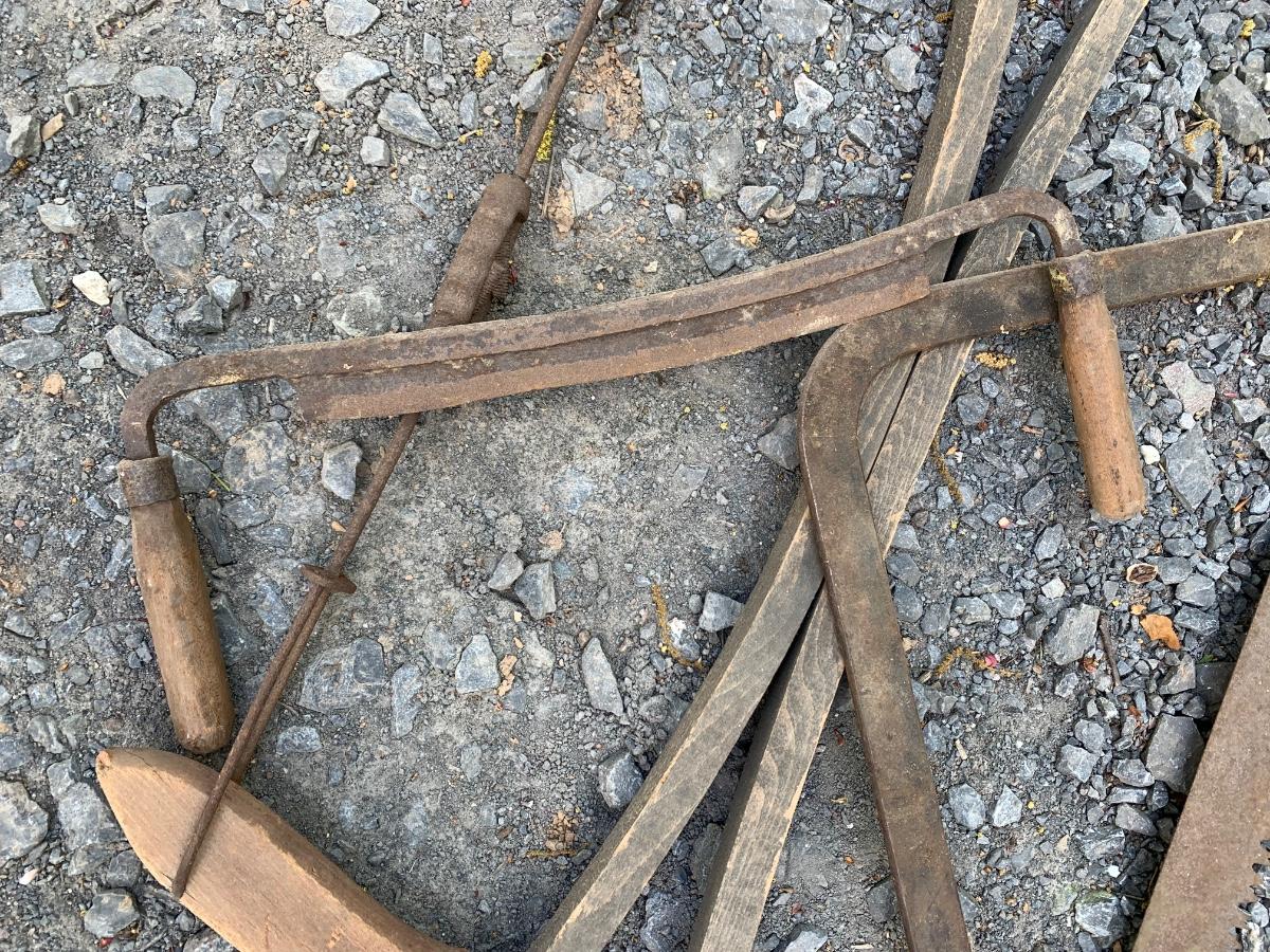 Antique Tool Lot - Wood Saw Draw Knife Meat Saw