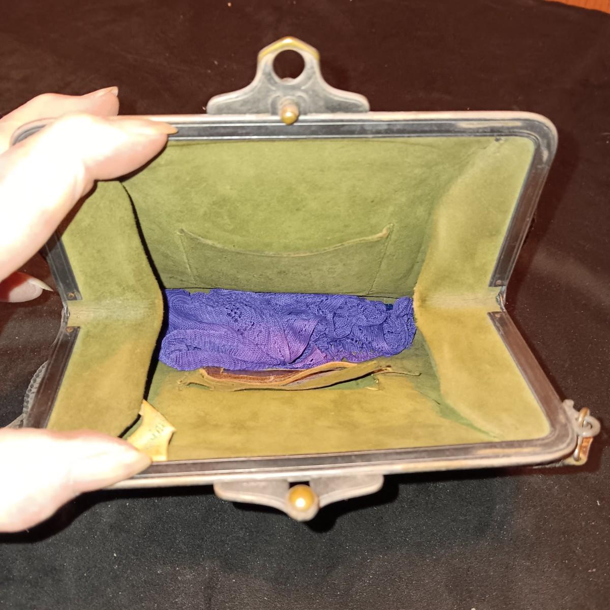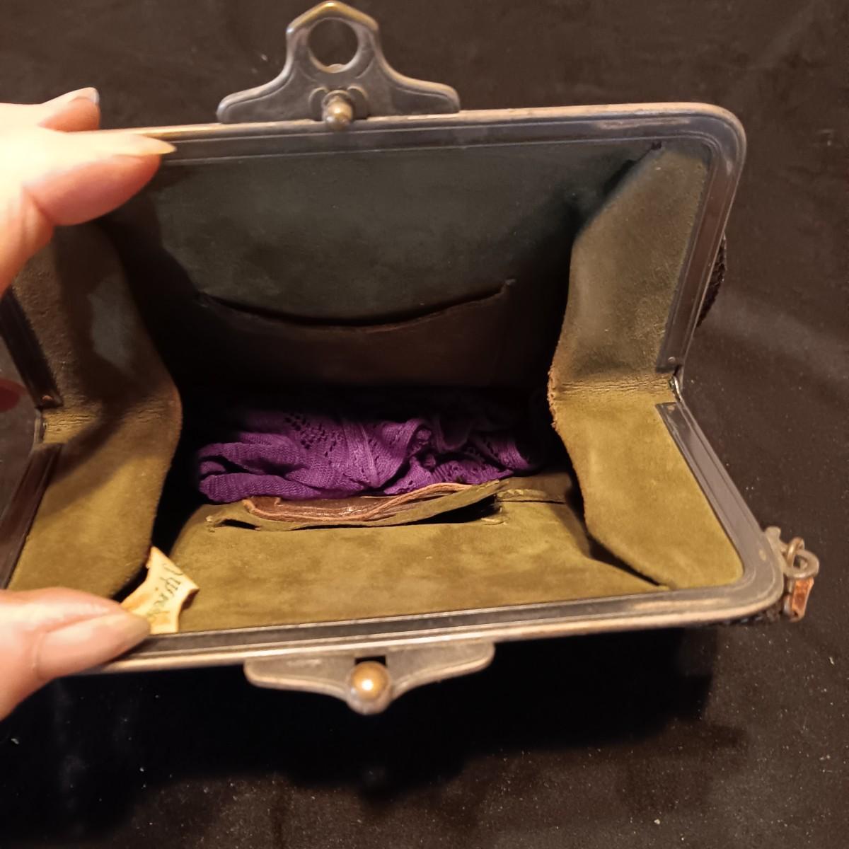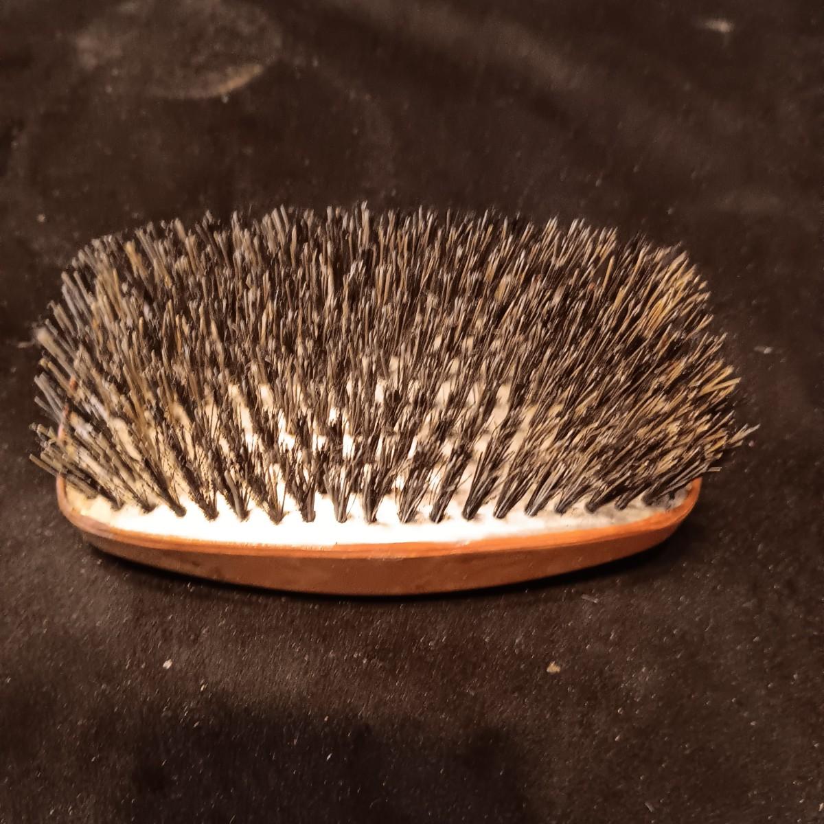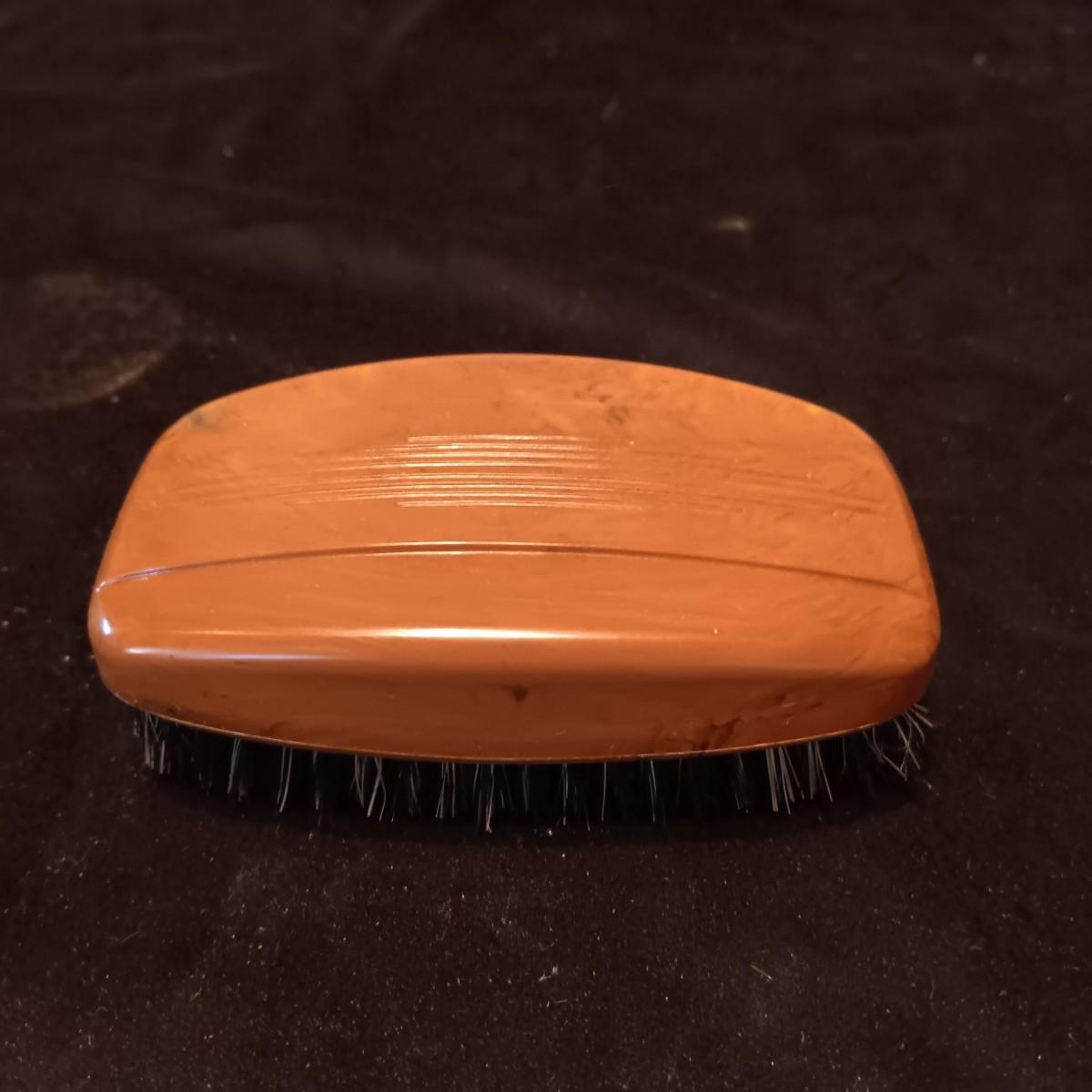 ANTIQUE TOOLED LEATHER PURSE AND A BAKELITE BRUSH
