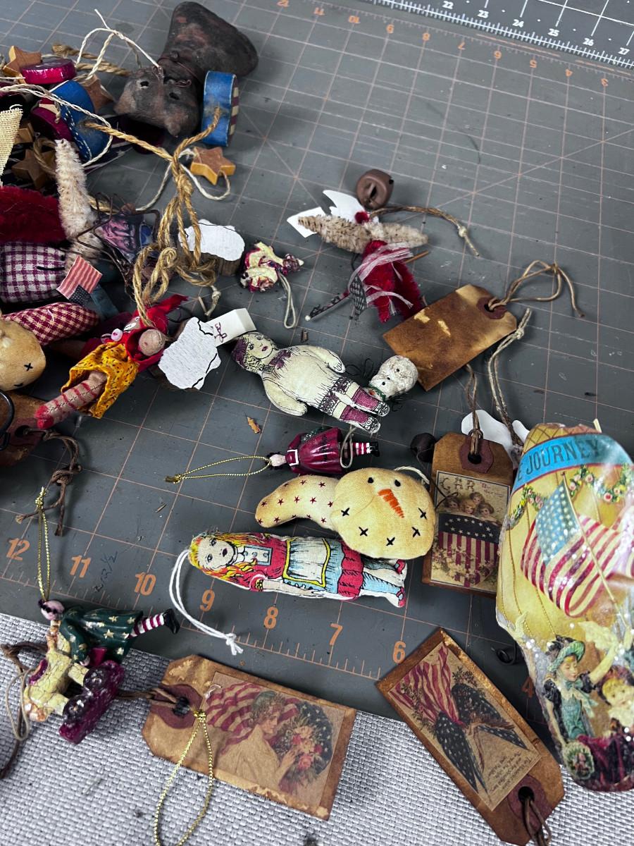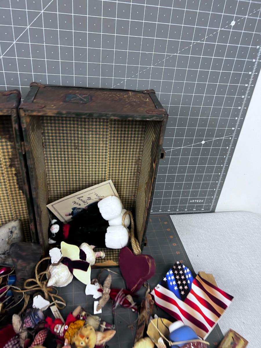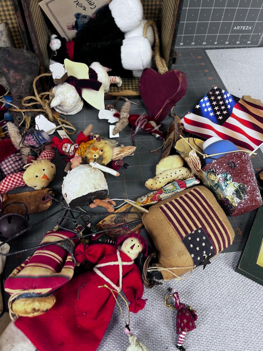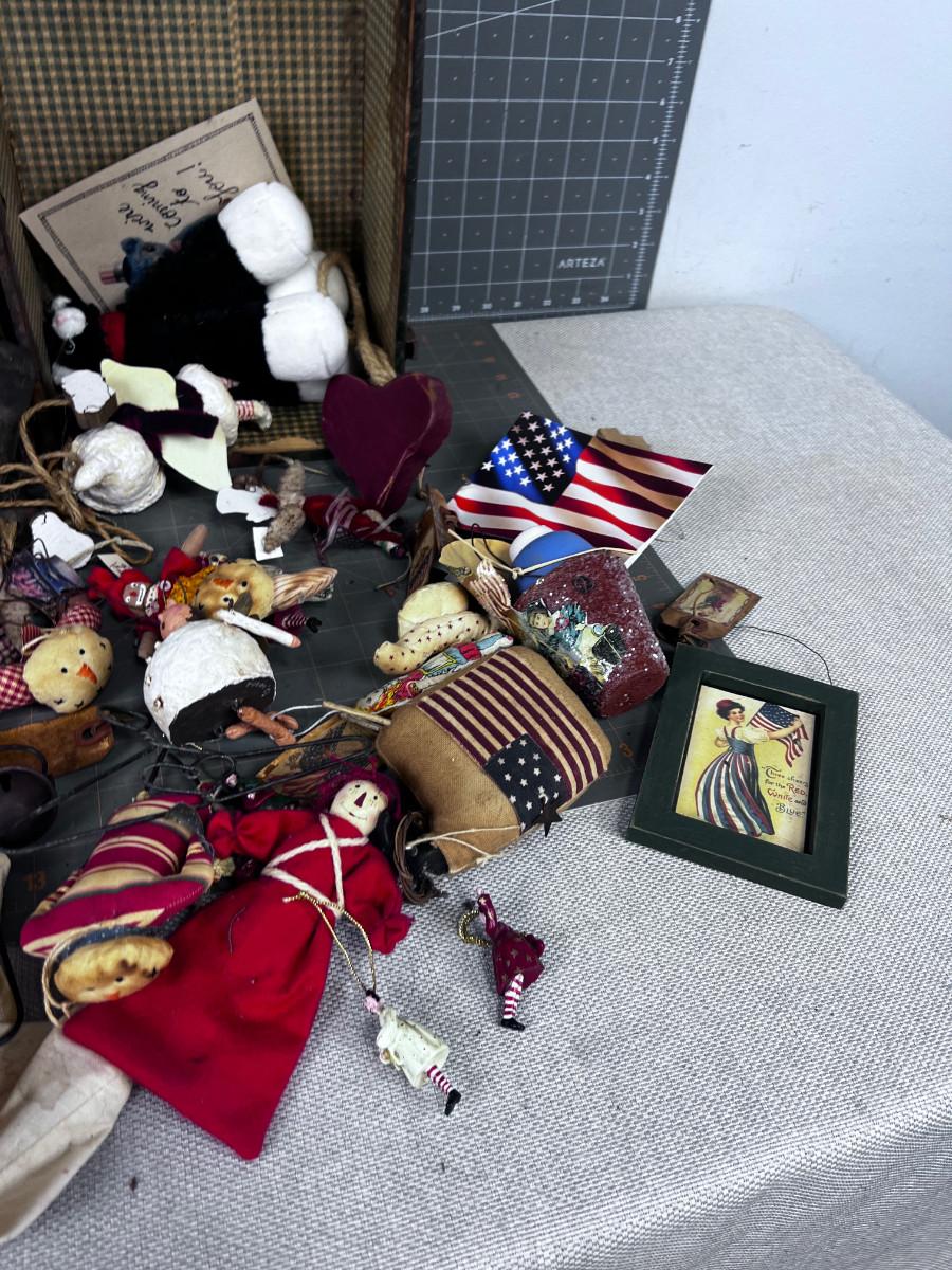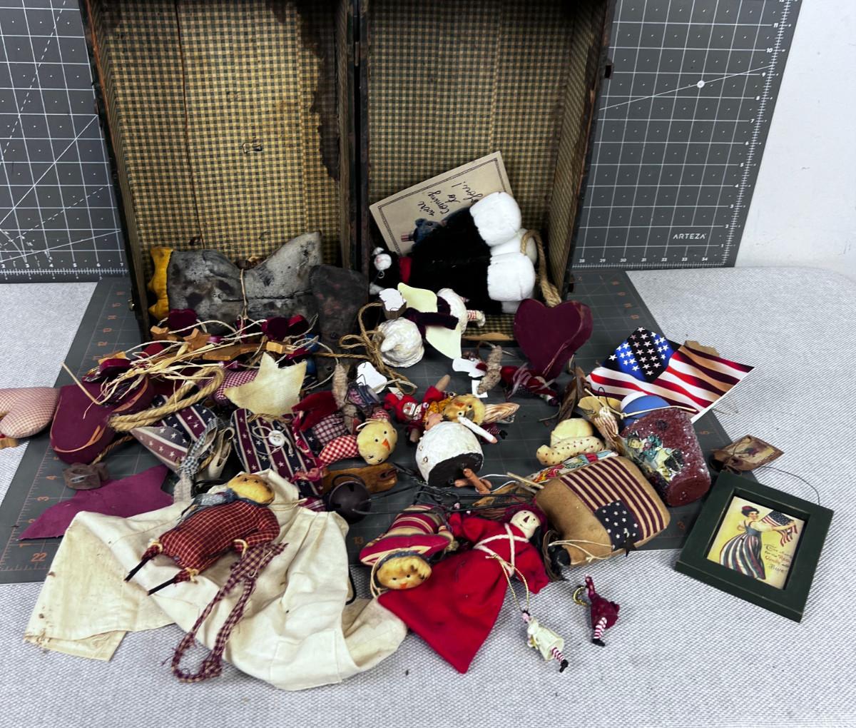 Antique Toy Trunk with Antique Folk Art Ornaments - Fun collection