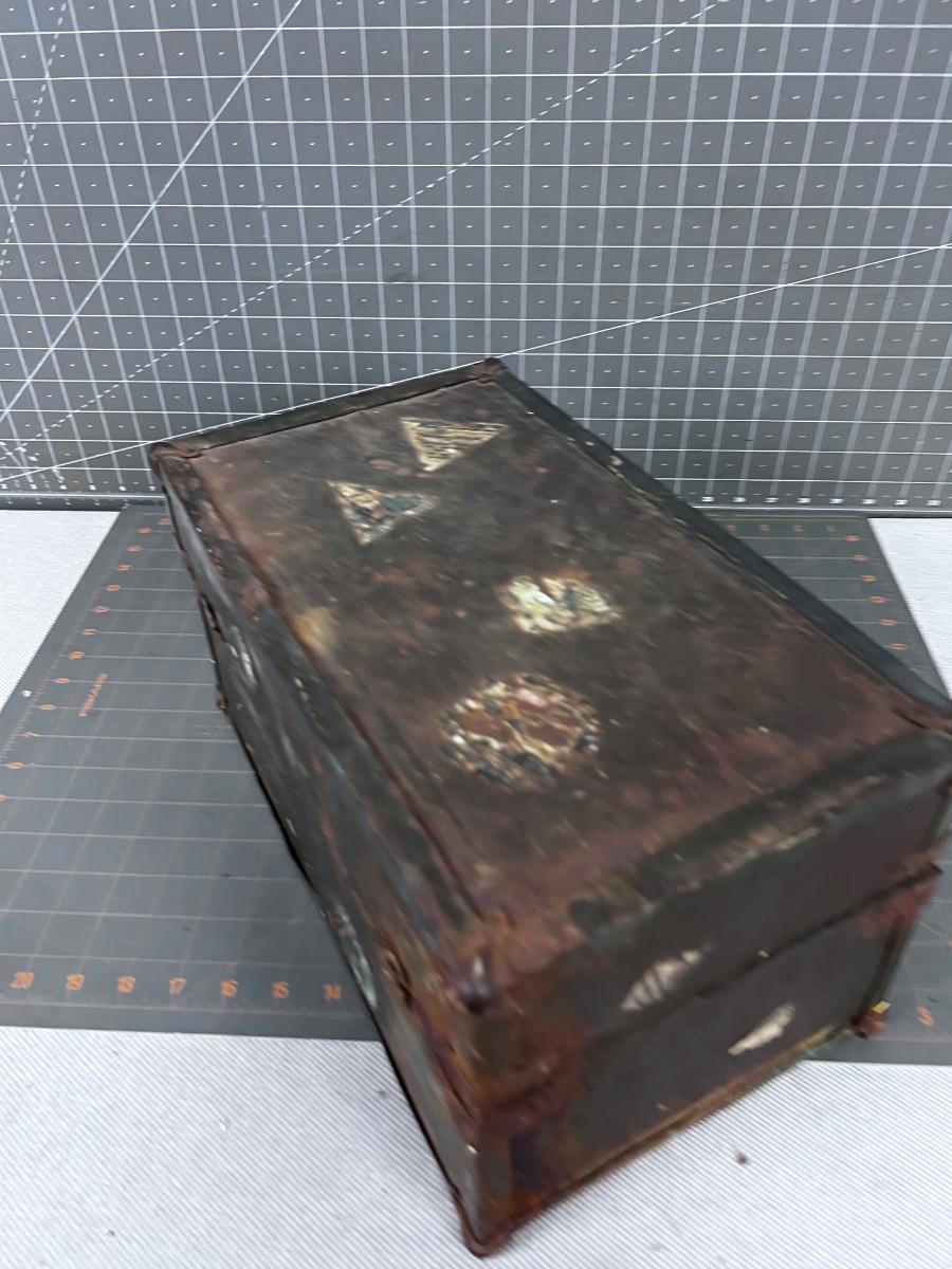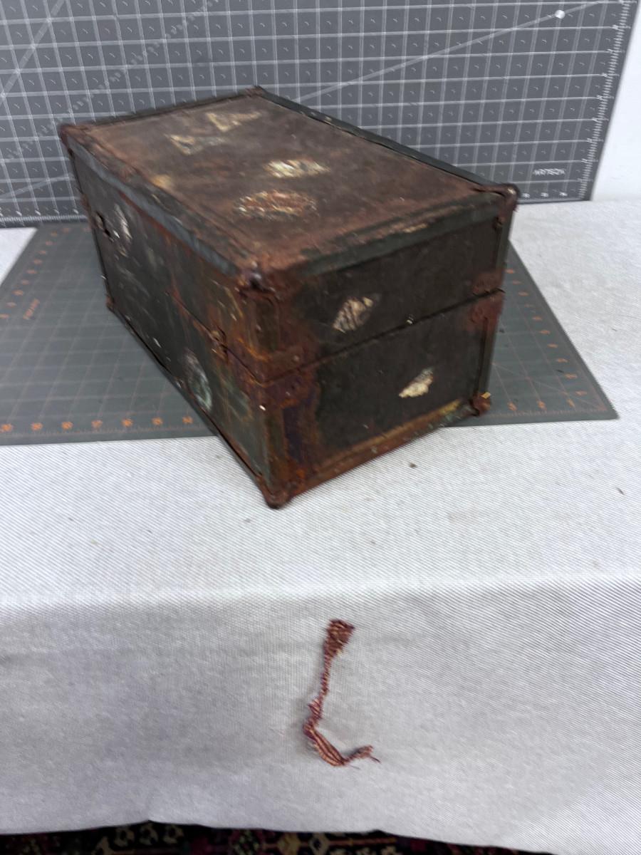 Fun Collection of Unique Items. 14 x 8 x 8" Trunk Shows Wear. No Hinges and a broken Latch.