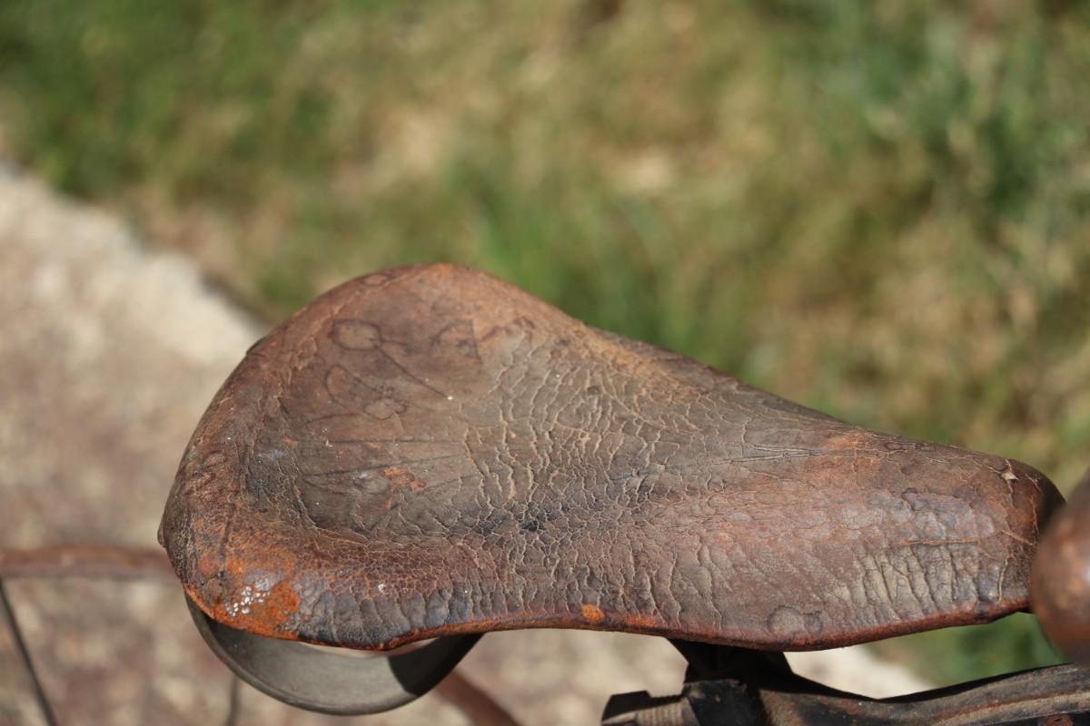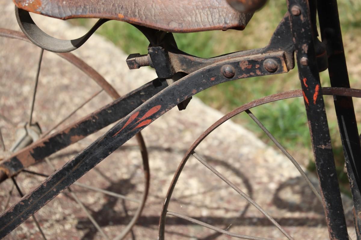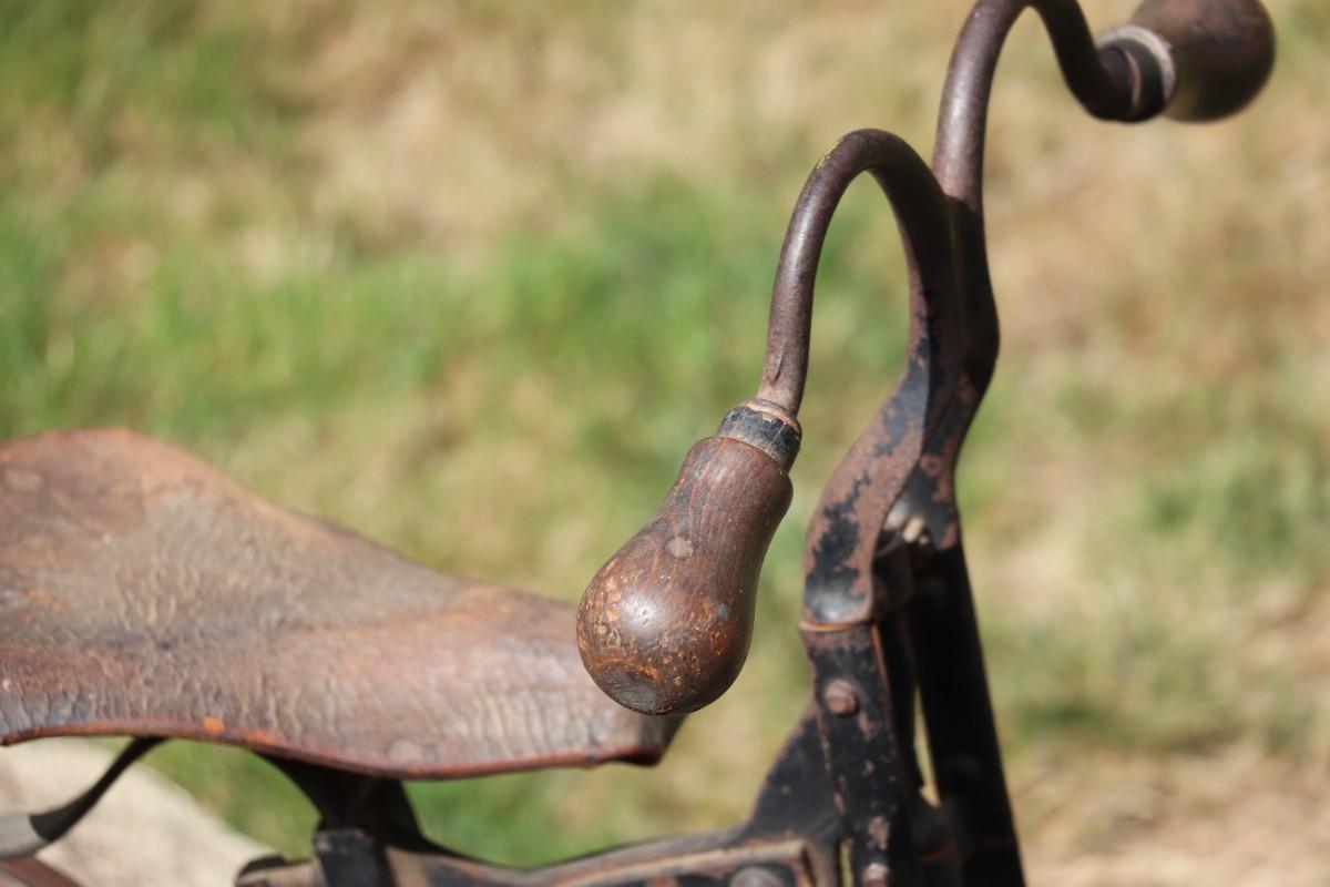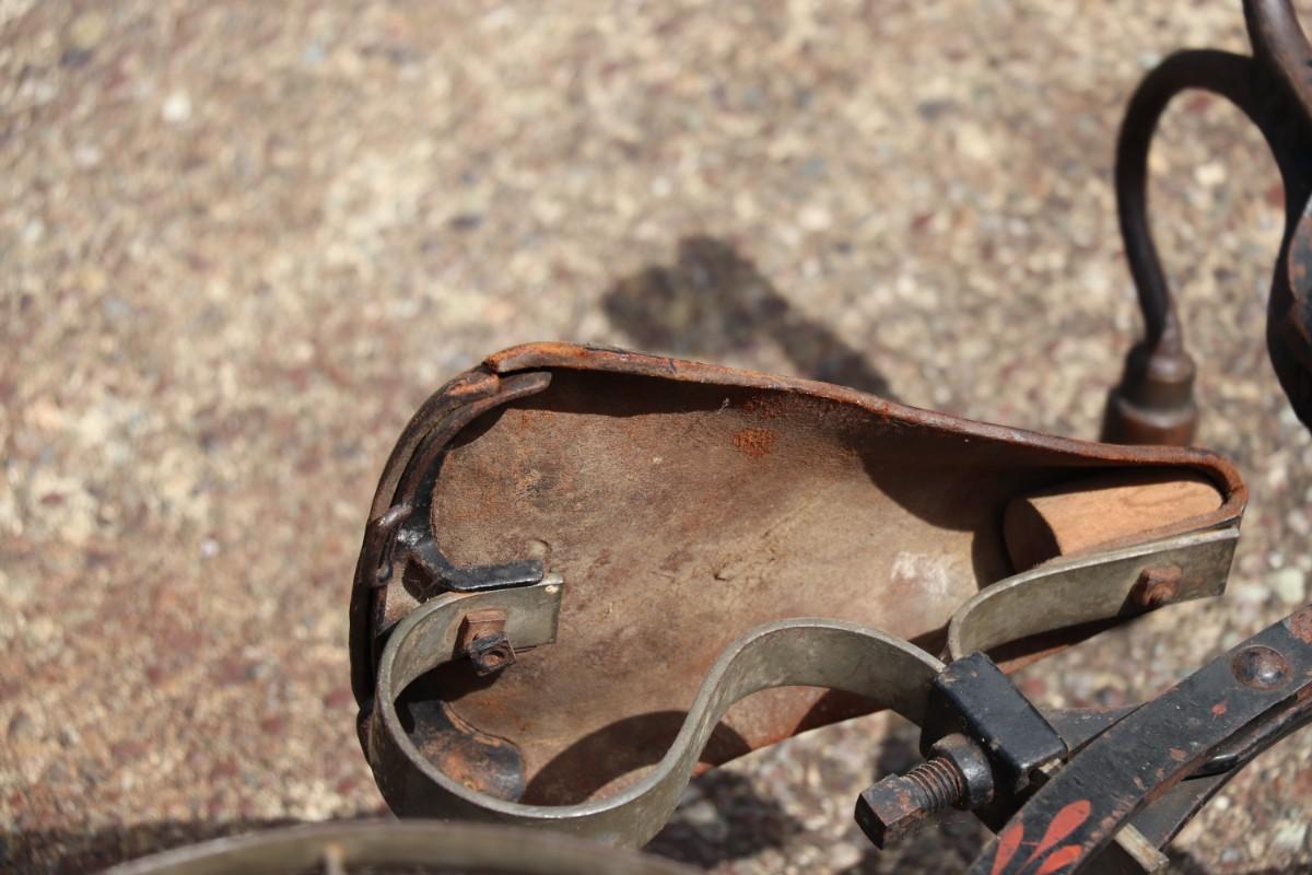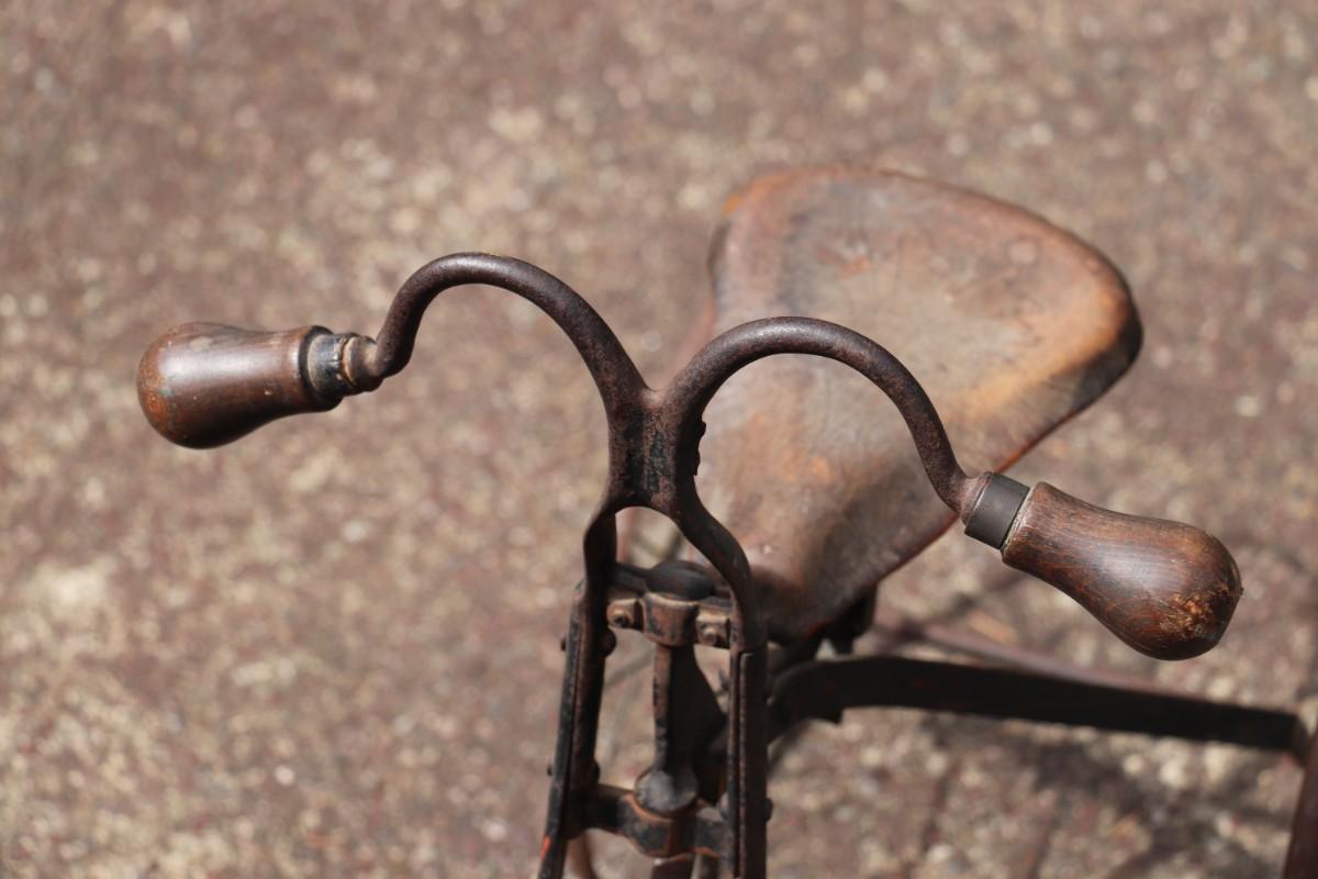 Antique Victorian Tricycle with Decorated Metal Frame and Original Leather Seat