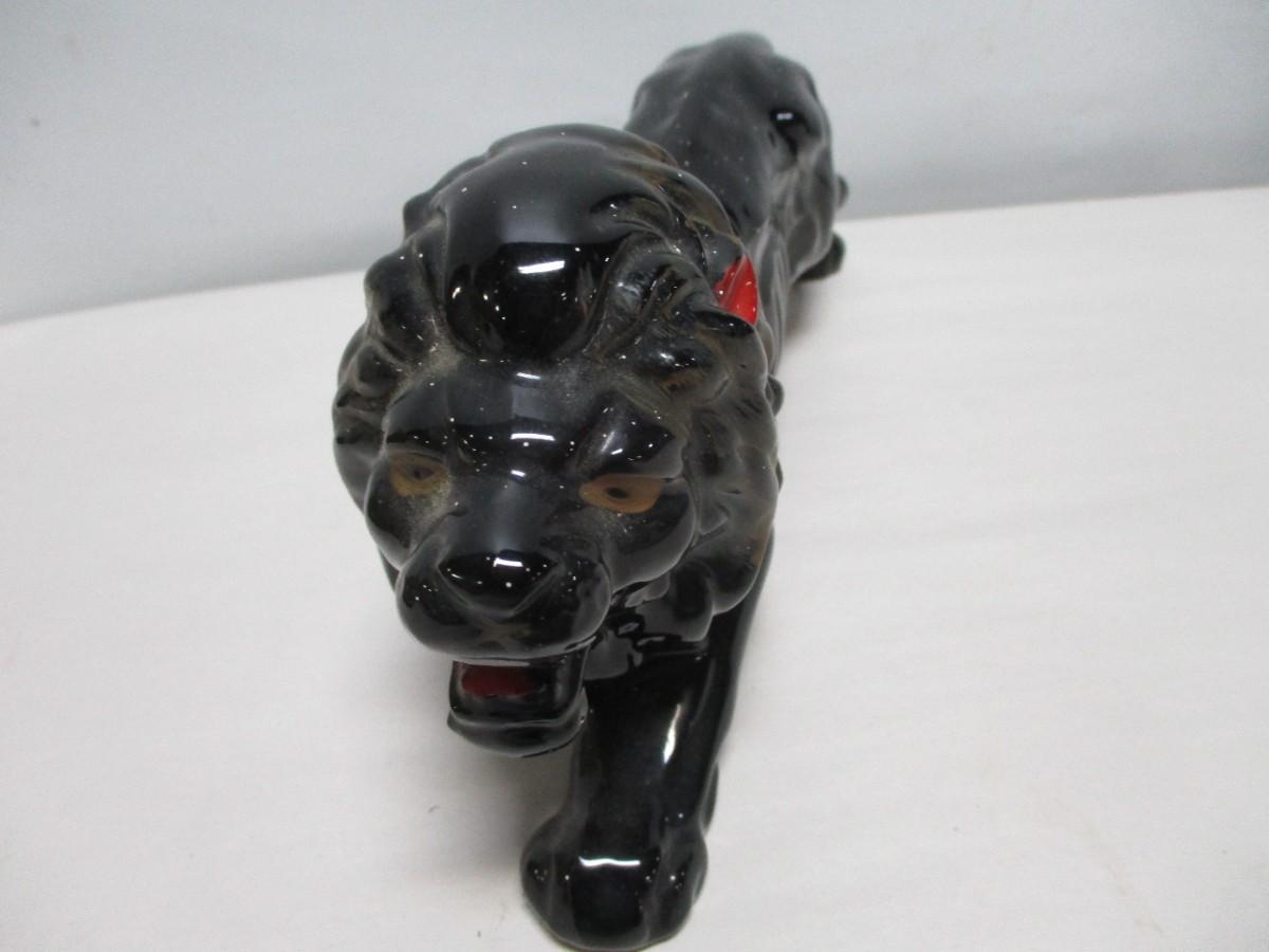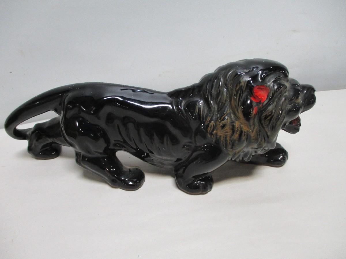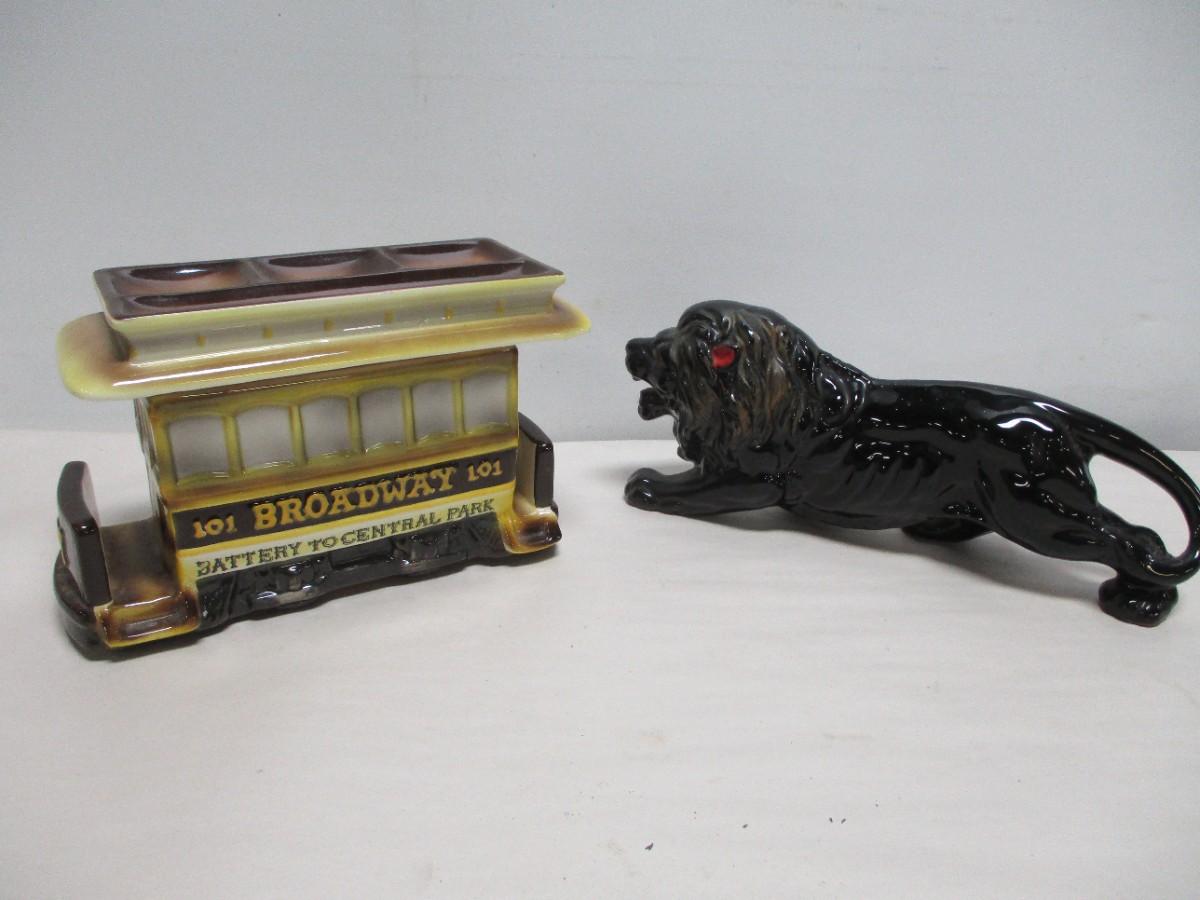 Antique Trolley Valet & Ceramic Black Lion Figure