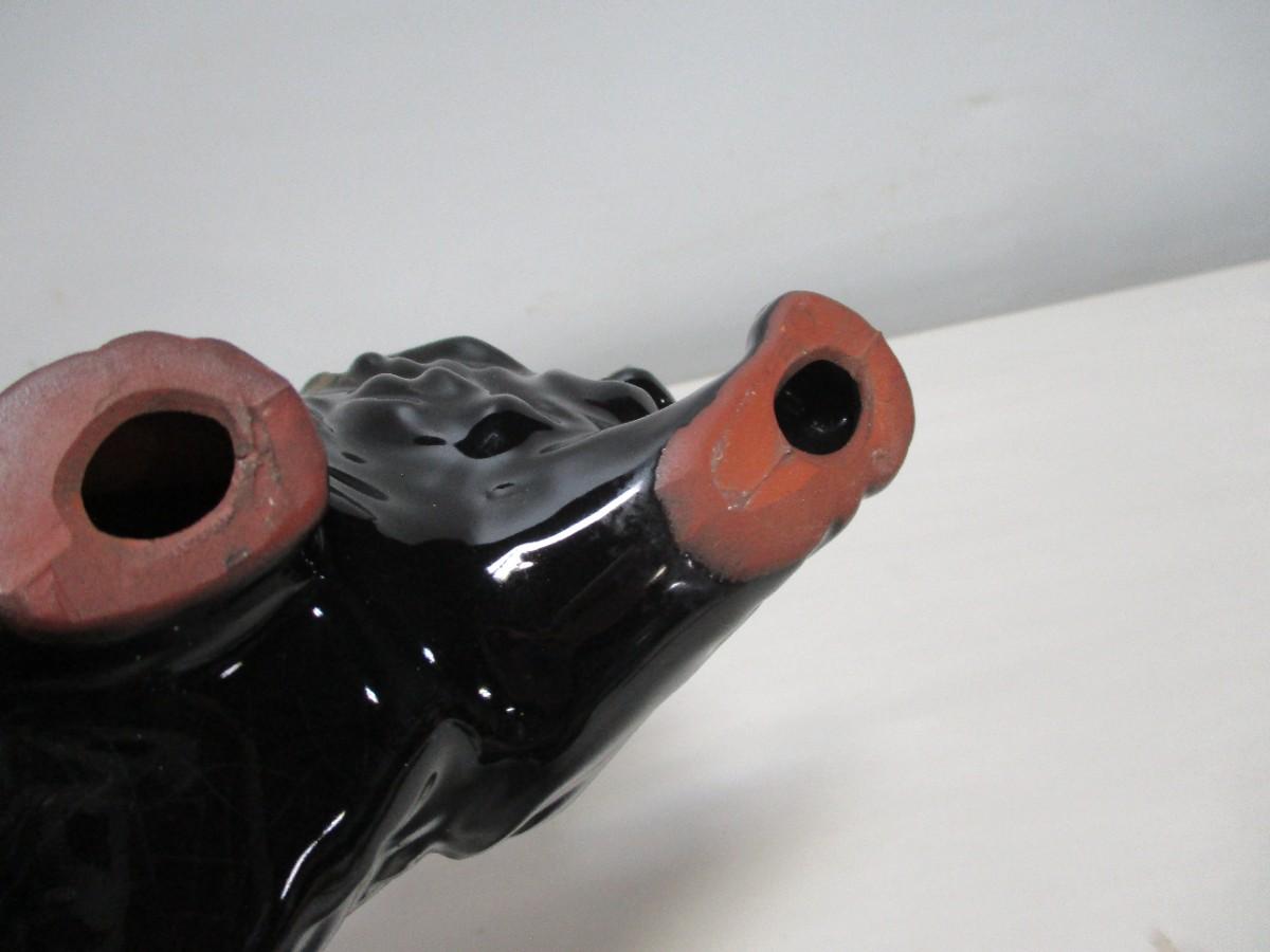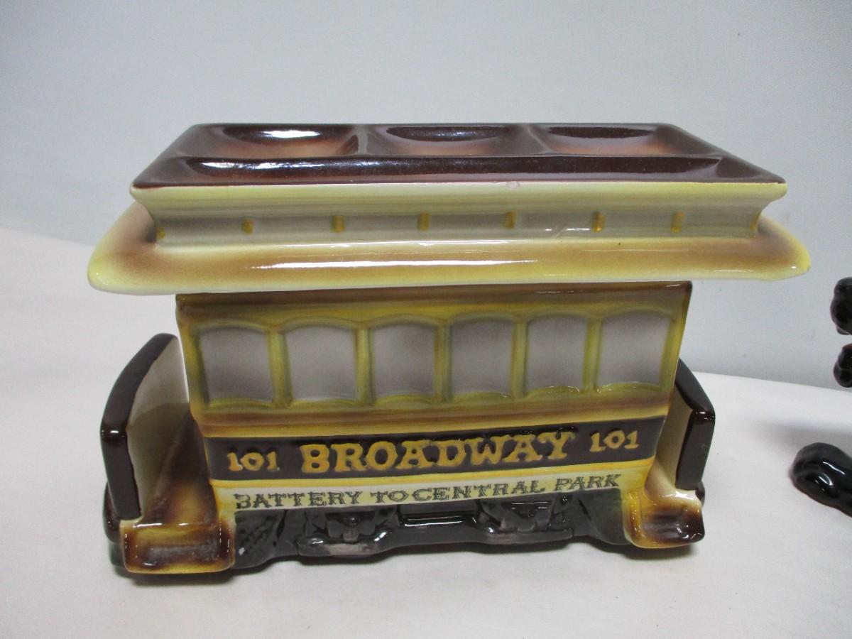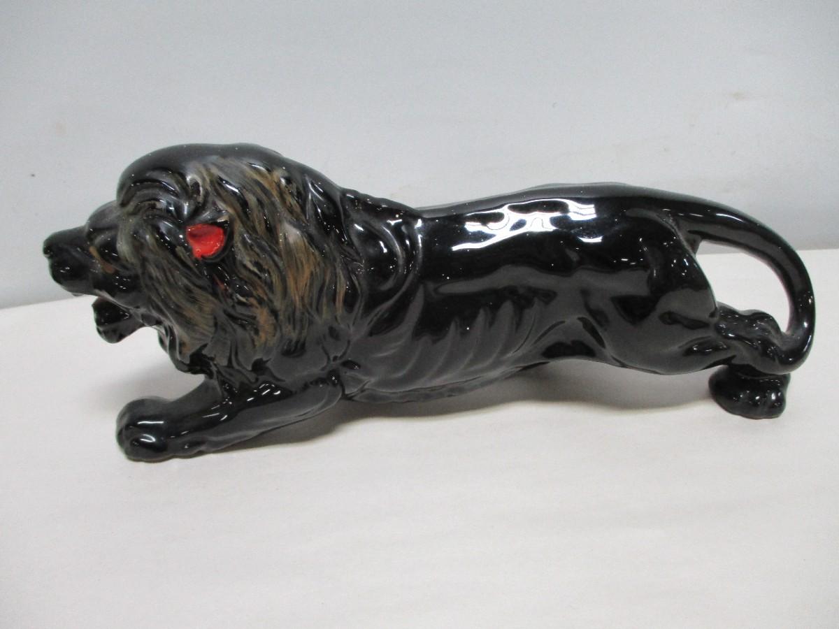 Antique Trolley Valet & Ceramic Black Lion Figure