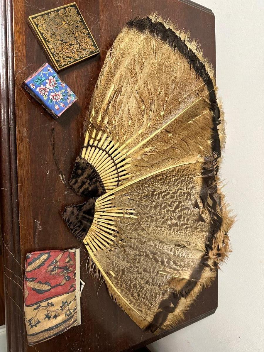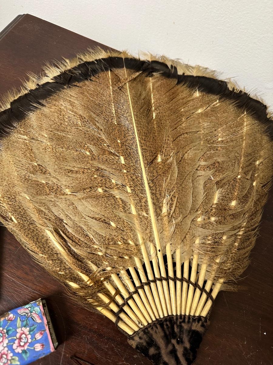 ANTIQUE TURKEY FEATHER HAND FANS & MORE LOT