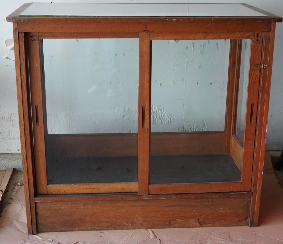ANTIQUE TURN OF THE CENTURY SHOW CASE OAK FRAME