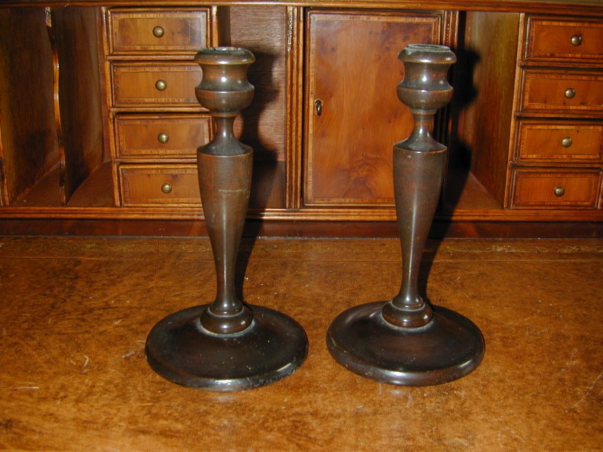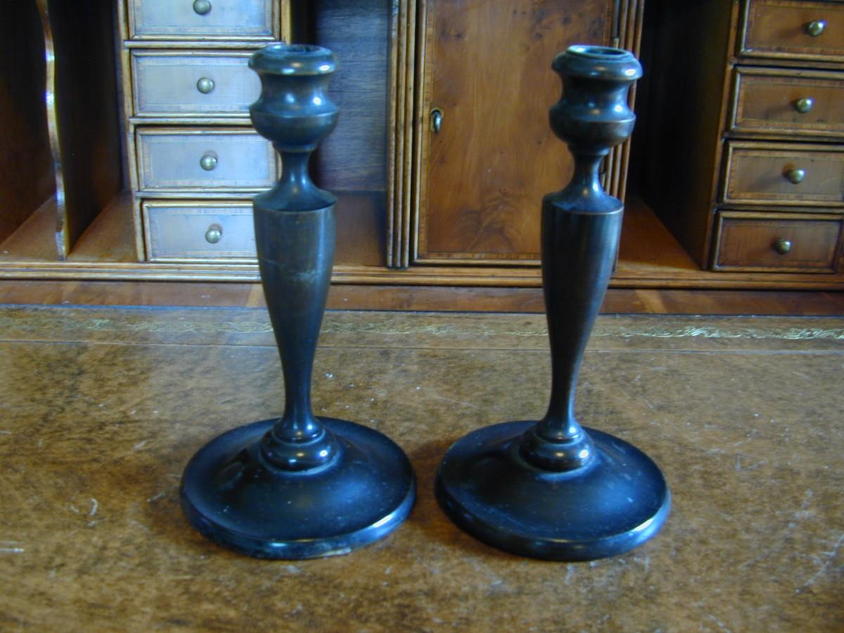Antique Turned Wood Candlesticks 9 3/8" Tall