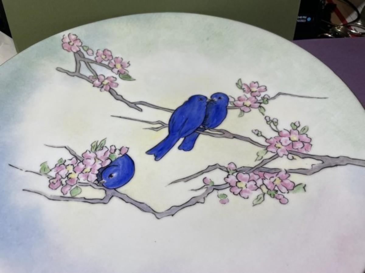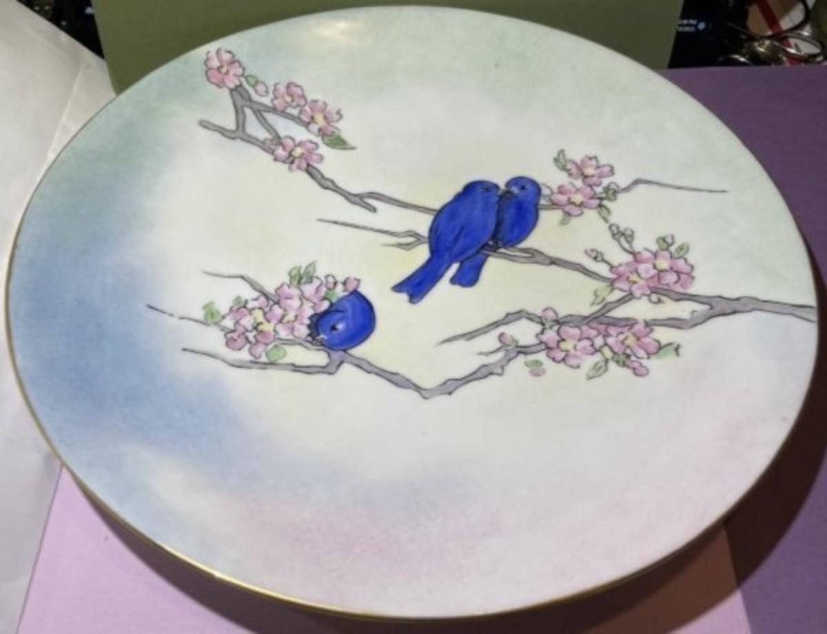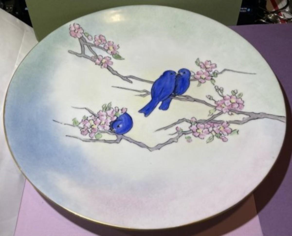 Antique T&V France Limoges Hand Painted Blue Bird Charger Plate 12.25" Diameter in Good Condition. $15 Domestic Shipping.