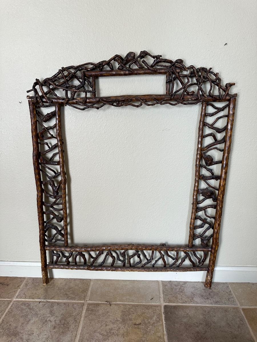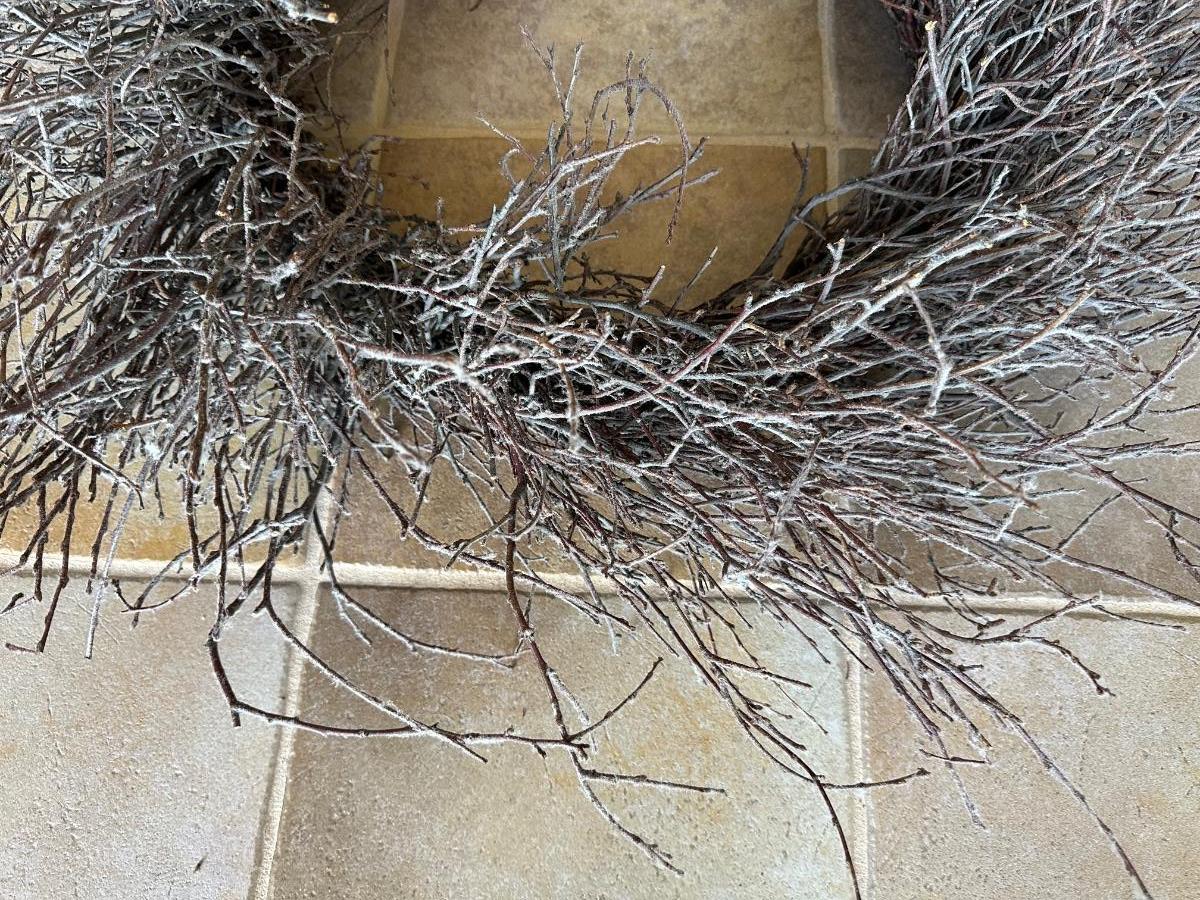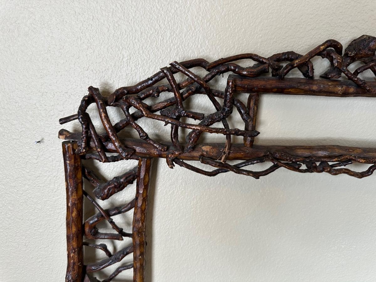 ANTIQUE TWIG FIREPLACE SCREEN AND A DRIED FOLIAGE WREATHE