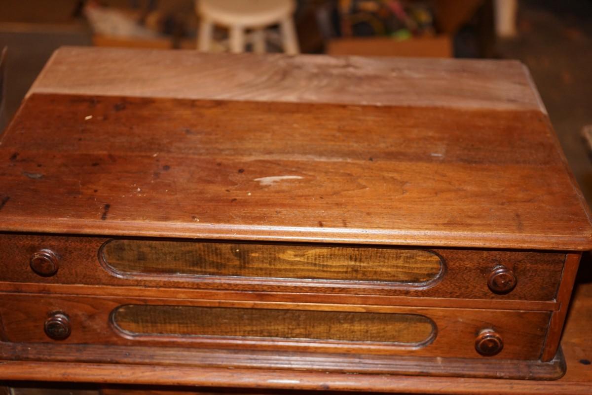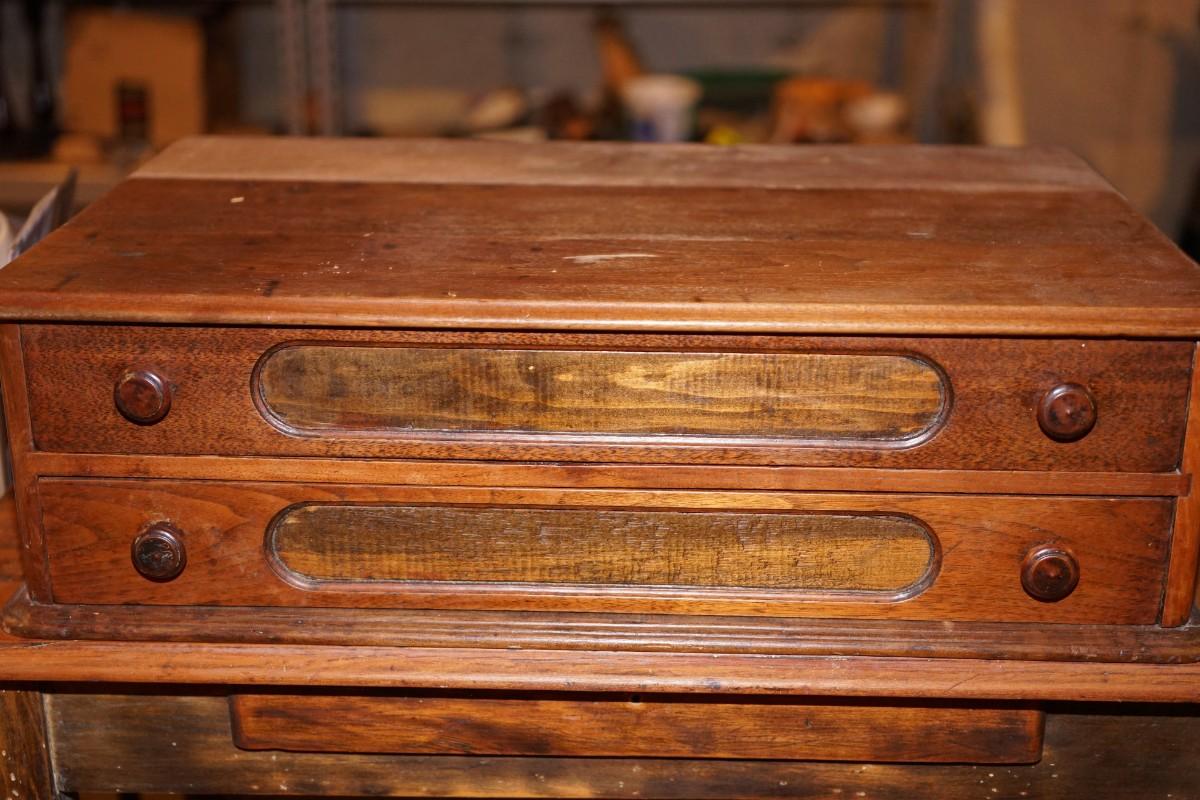ANTIQUE TWO DRAWER SPOOL CABINET.